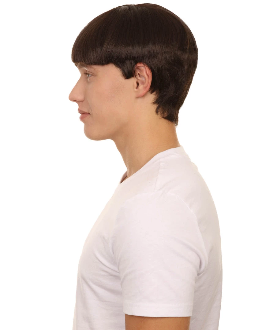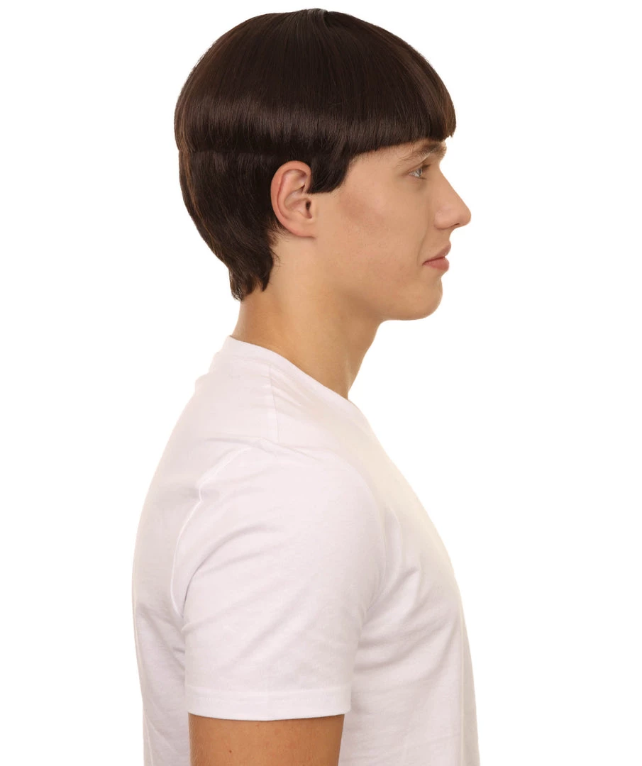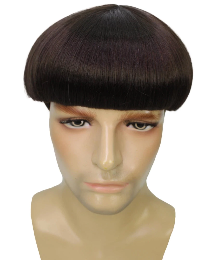 Adult Men’s 9″ Inch Short Length Halloween Classic Moe Retro Bowl Cut Costume Brown Wig, Synthetic Soft Fiber Hair, Perfect For Your Next Festival And Group Anime Party! | HPO
