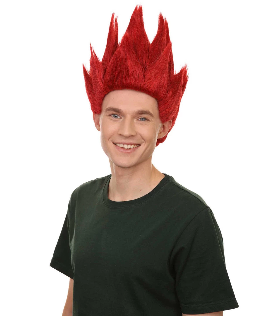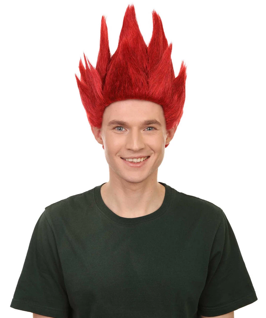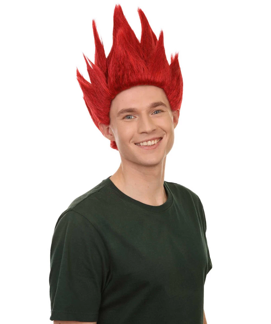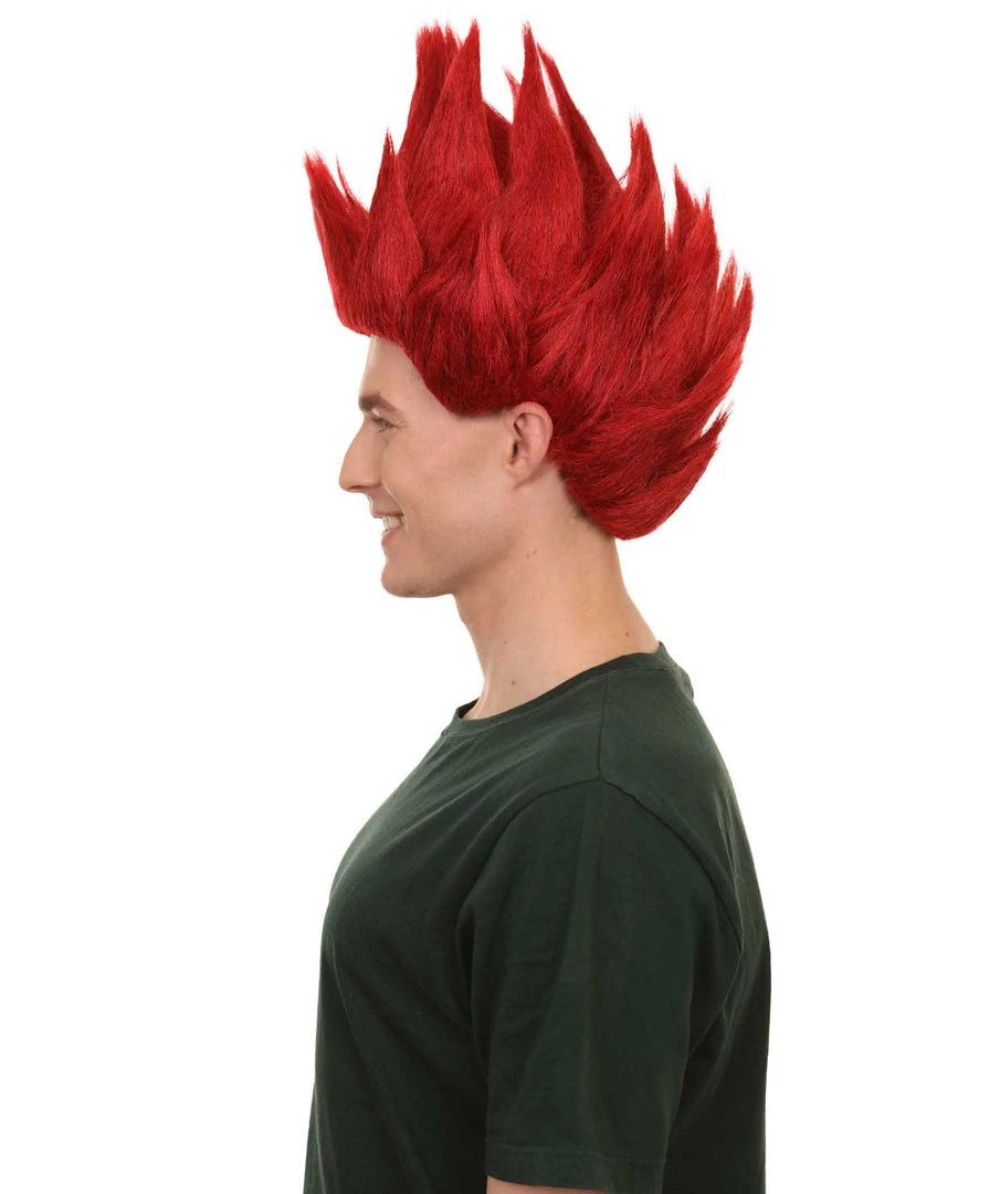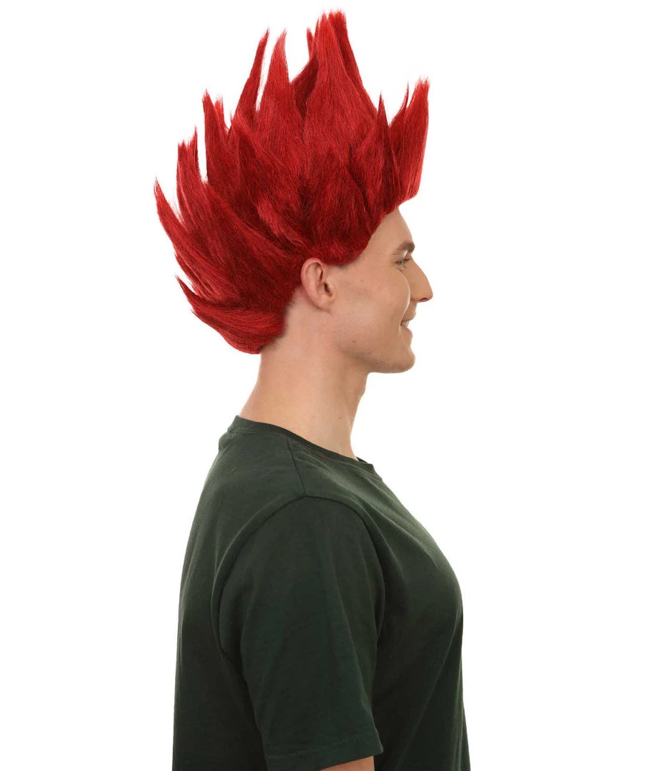 Adult Men’s Medium Length Halloween Cosplay Spiked Red Riot Costume Wig, Synthetic Soft Fiber Hair, Perfect For Your Next Anime Festival Or Convention | HPO
