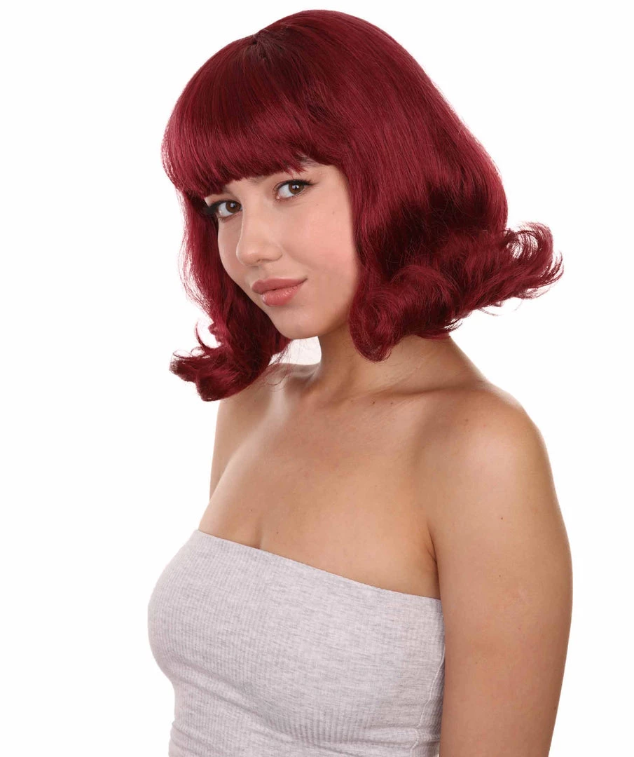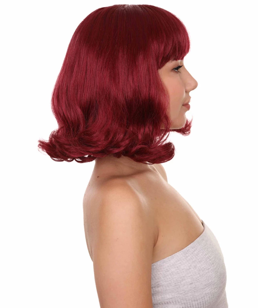 Adult Women’s 12″ Inch Medium Length Wavy Halloween Cosplay Anime Groovy Jinkies House Wife Velma Costume Wig, Synthetic Fiber Wine Hair, | HPO