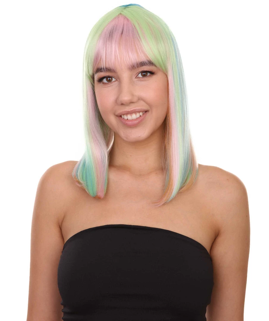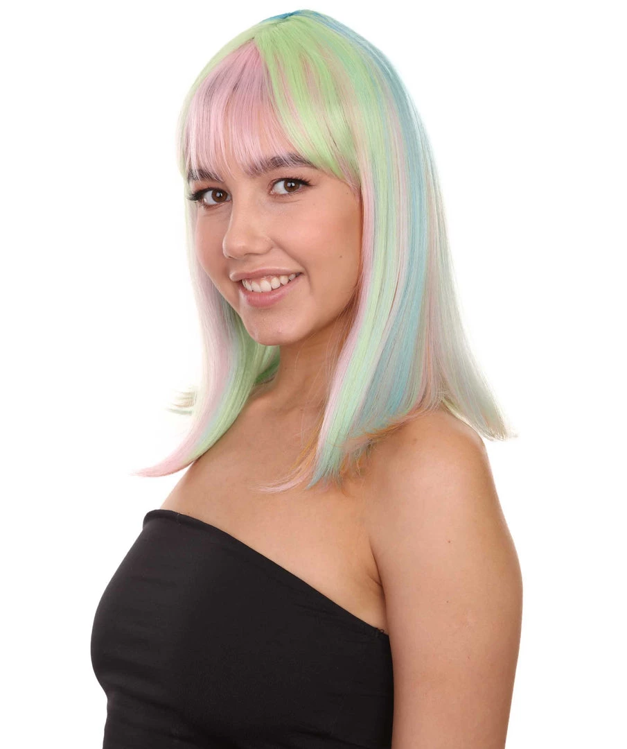 Adult Women’s 14″ Inch Medium Length Halloween Cosplay Rainbow Rave Mermaid Costume Wig, Synthetic Soft Fiber Hair, Perfect For Your Next Festival And Group Anime Party! | HPO