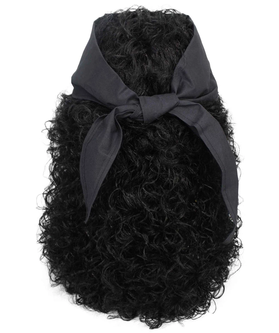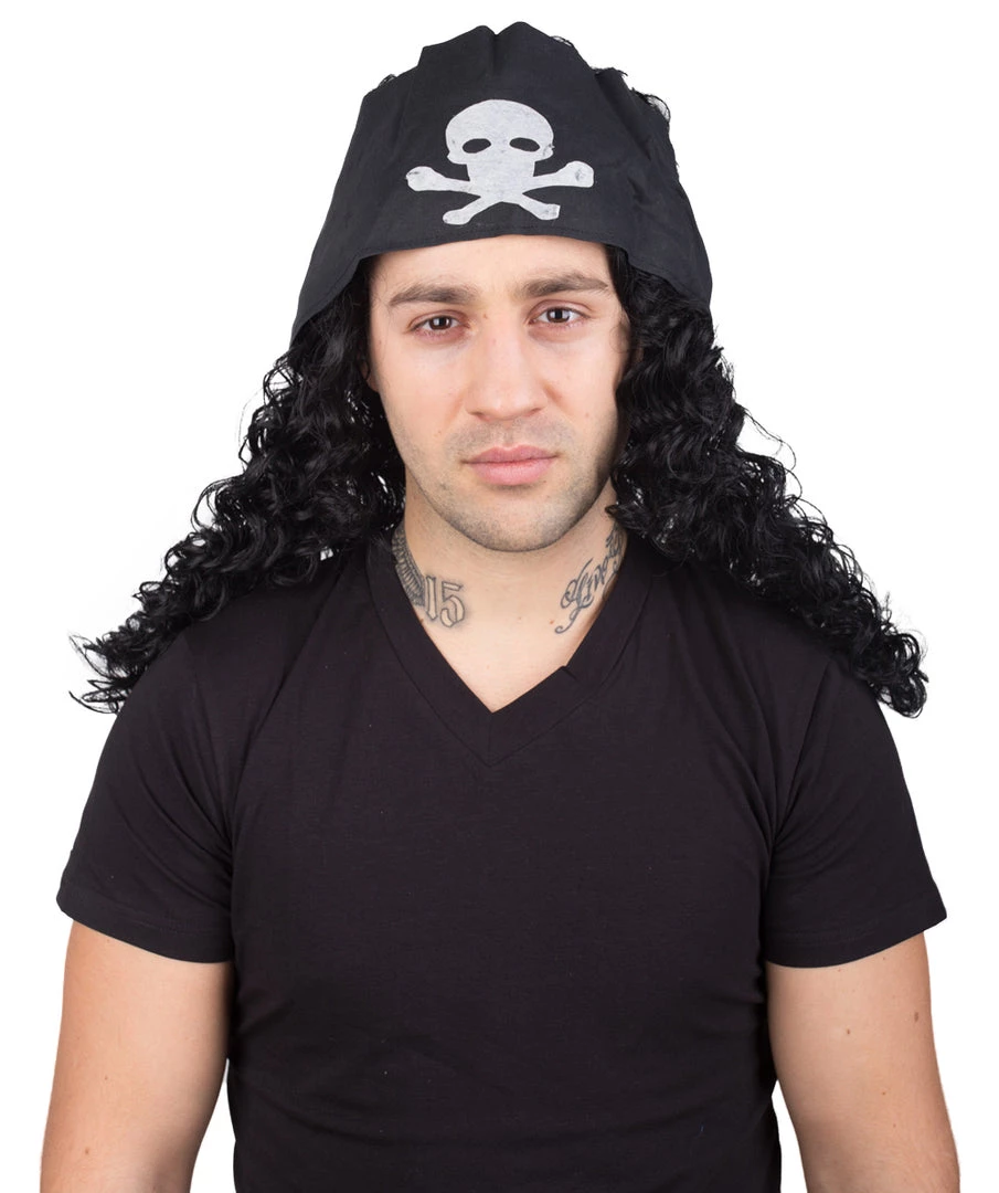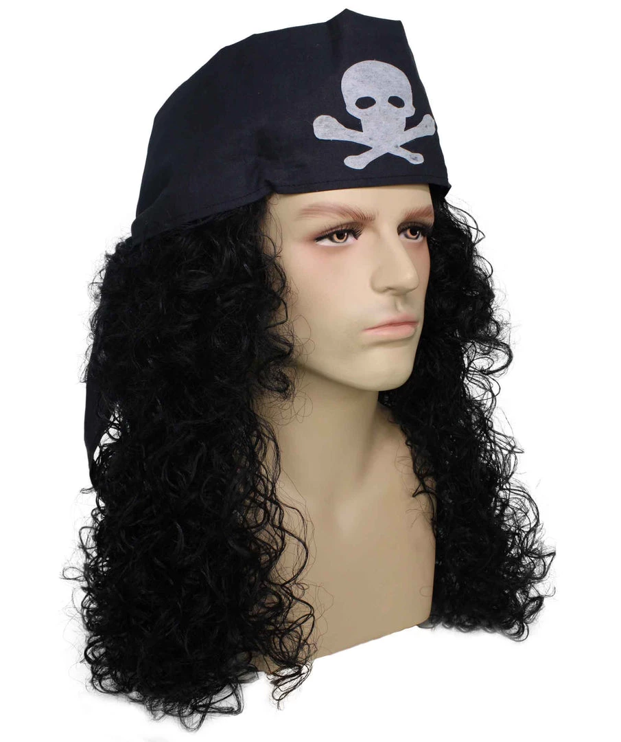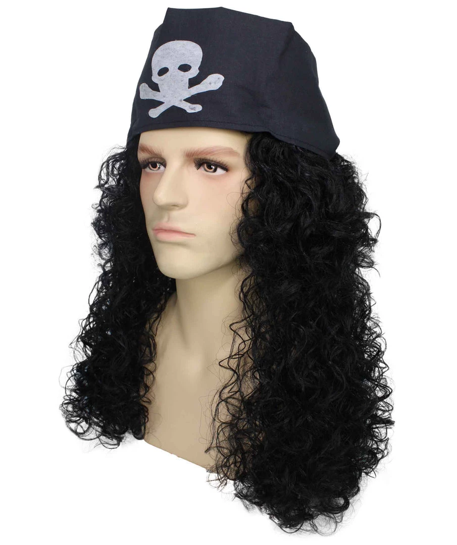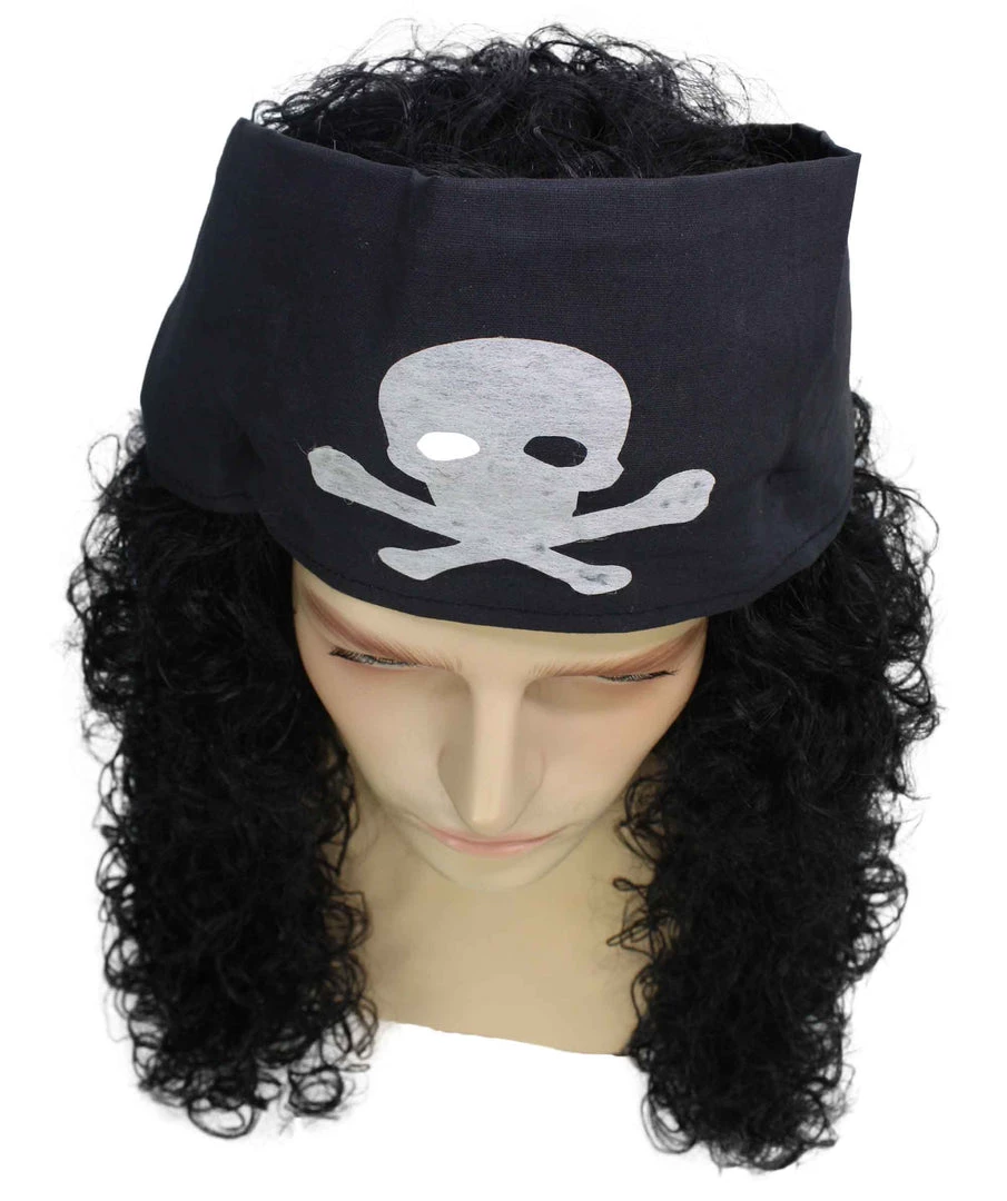 BC Men’s Long Black Color Curly Pirate Buccaneer Wig With Bandana