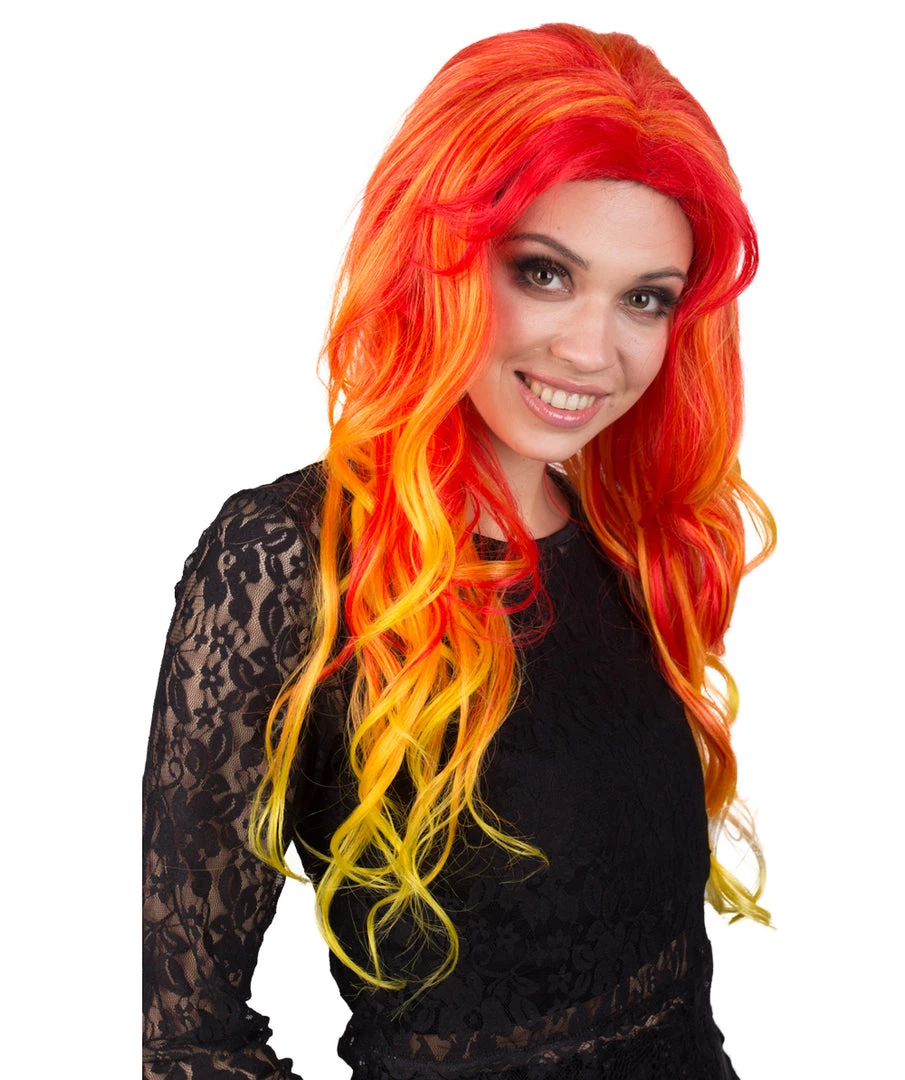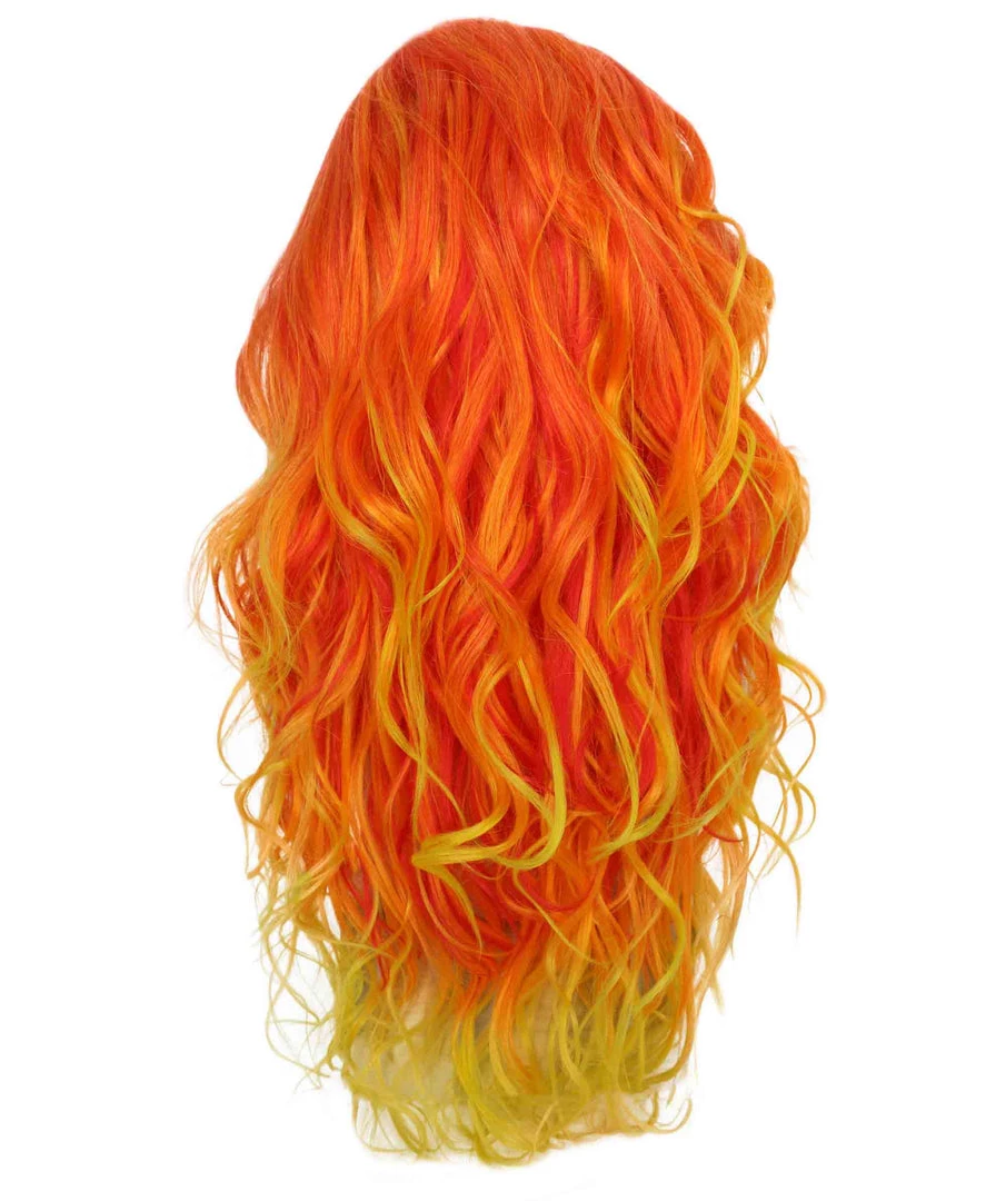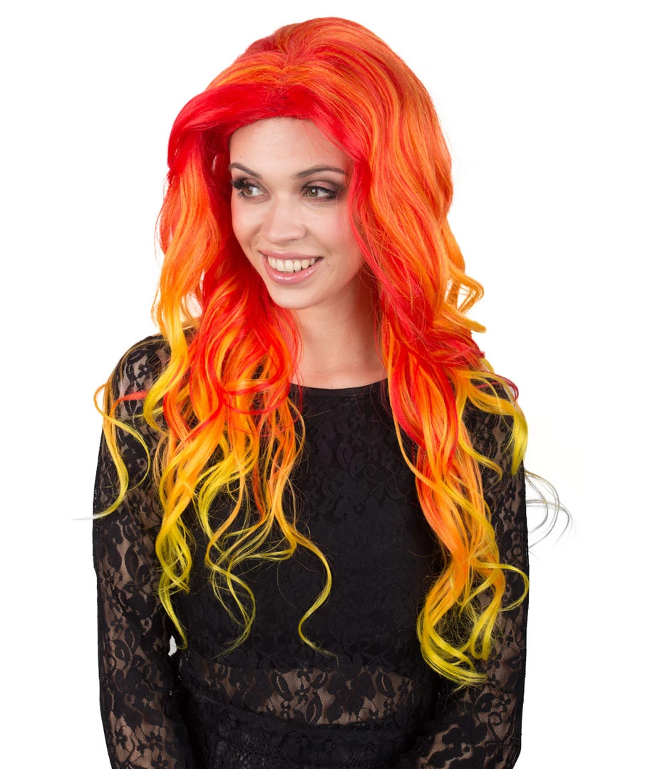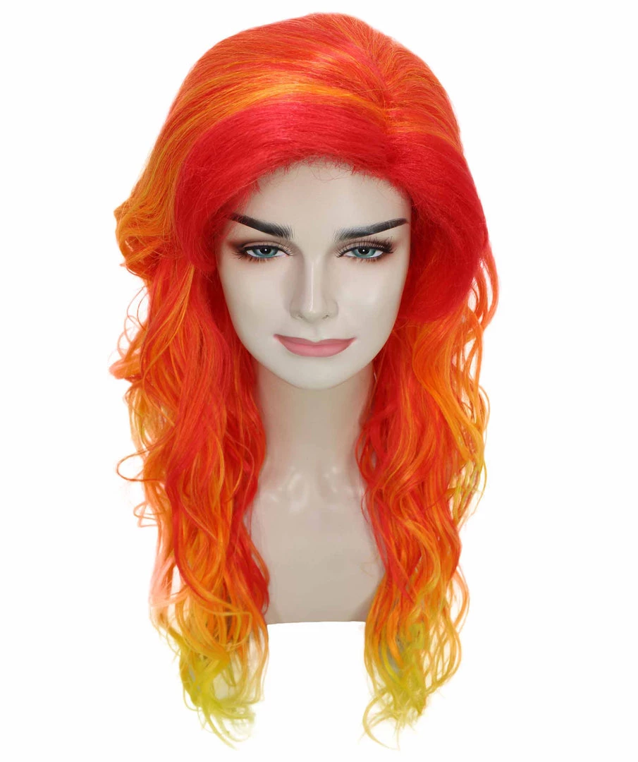 BC Women’s Red And Yellow Color Wavy Long Length Trendy Flaming Beauty Wig