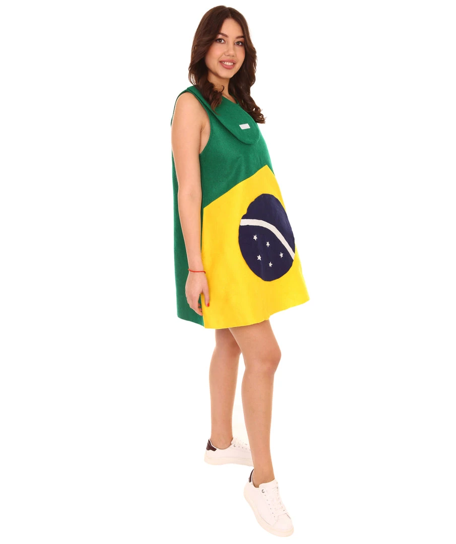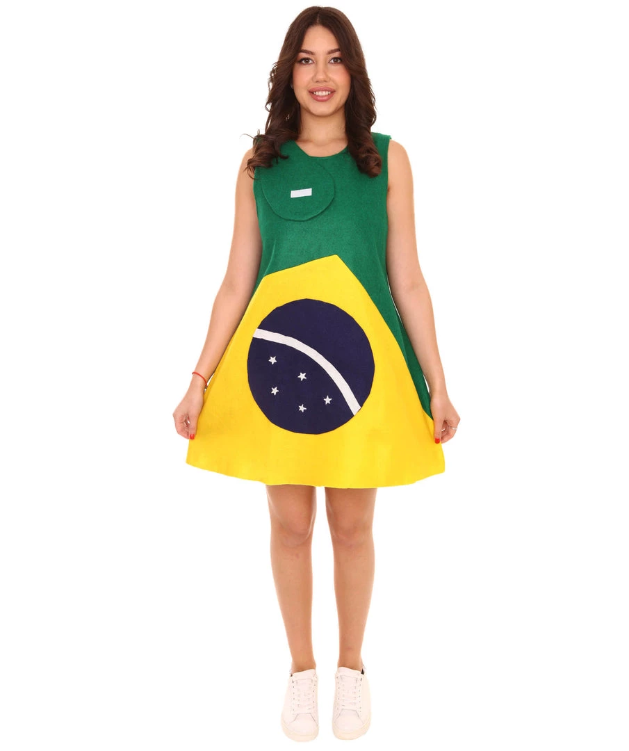 FLAGWIGS Adult Women’s Brazil Flag Trolls Dress Sport Costume | Patriotic Cosplay Costume