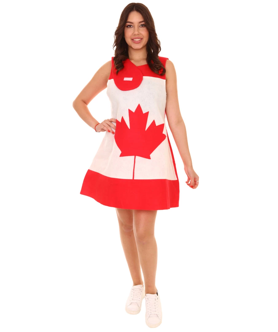 FLAGWIGS Adult Women’s Canada Flag Trolls Dress Costume | Patriotic Cosplay Costume