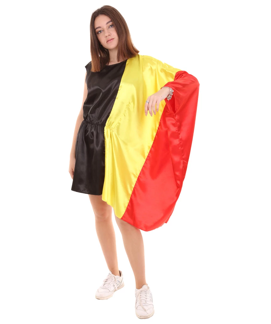 FLAGWIGS Adult Women’s Celebratory Belgian Flag Dress Costume | Patriotic Cosplay Costume