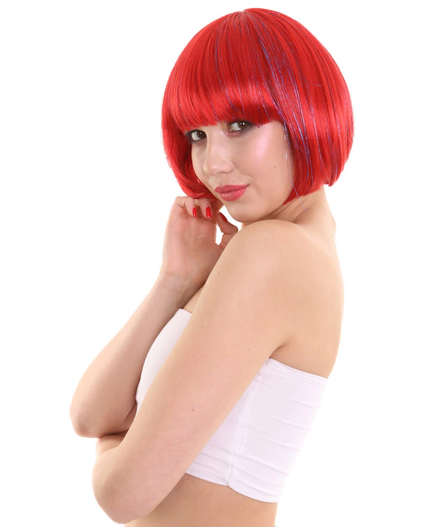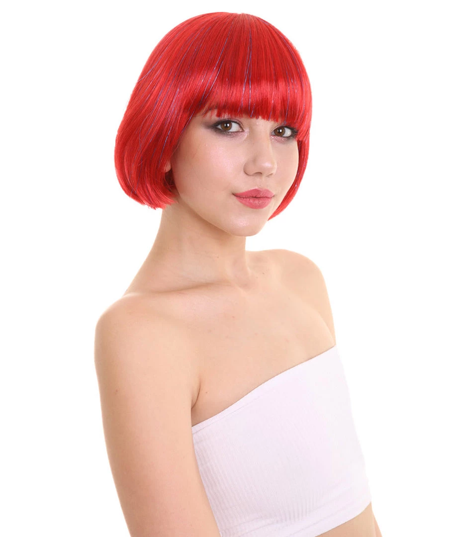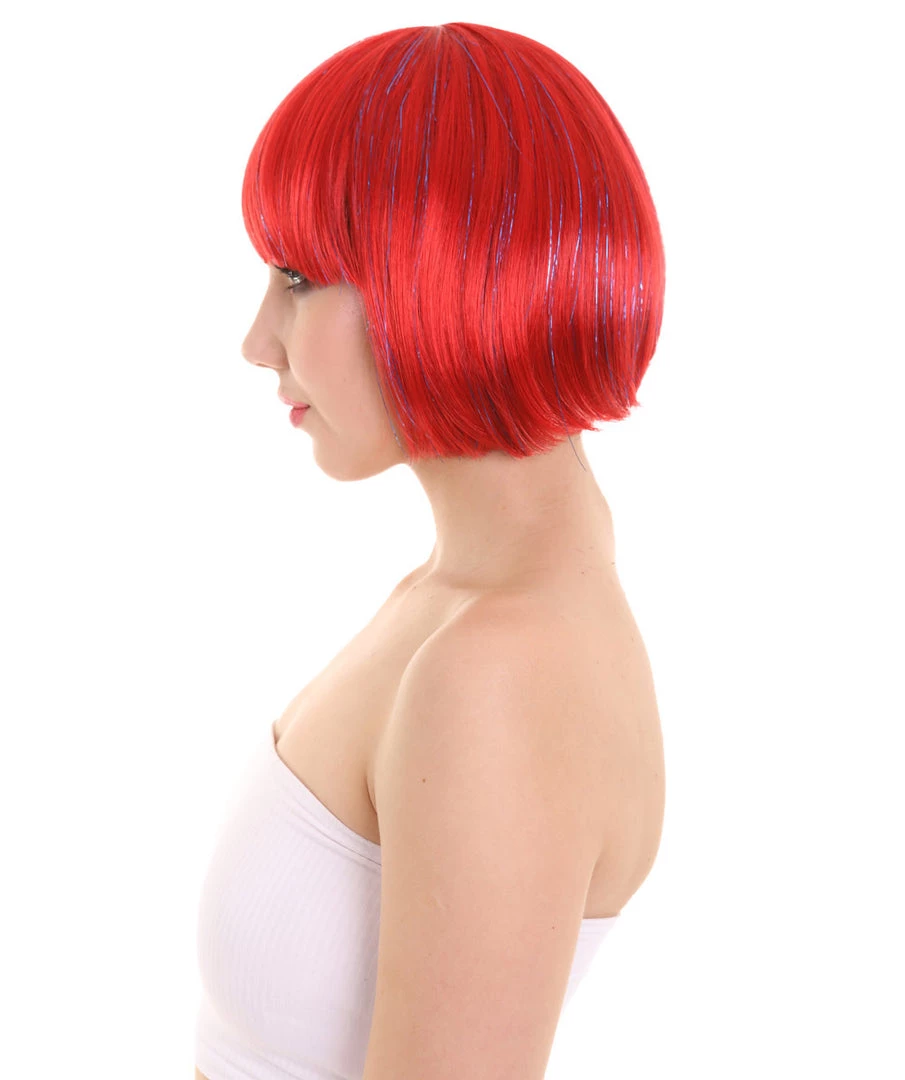 FLAGWIGS Bright Red Bob With Tinsel | Sparkly Celebrity Halloween Wig | Premium Breathable Capless Cap