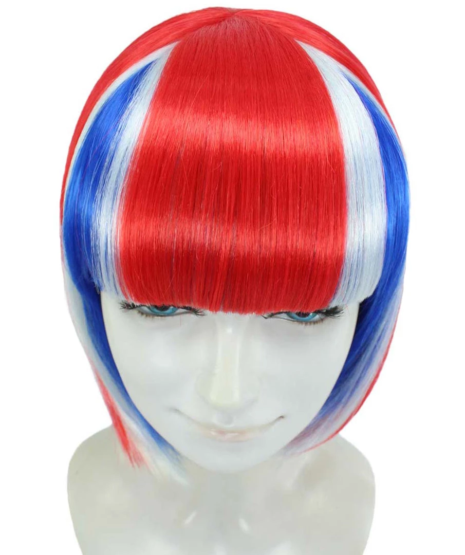 FLAGWIGS Iceland Flag Sport Party Bob Wig | National Pride Red White Blue Wig | Premium Breathable Capless Cap Women’s