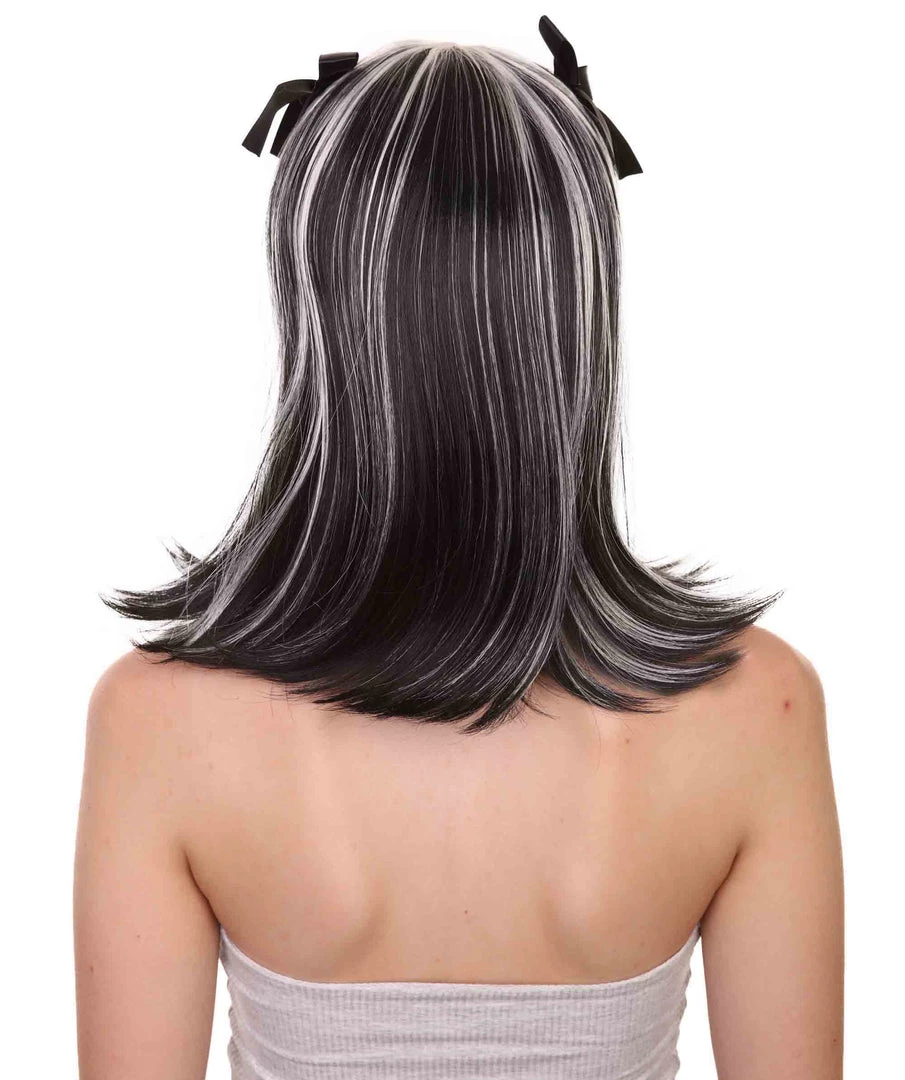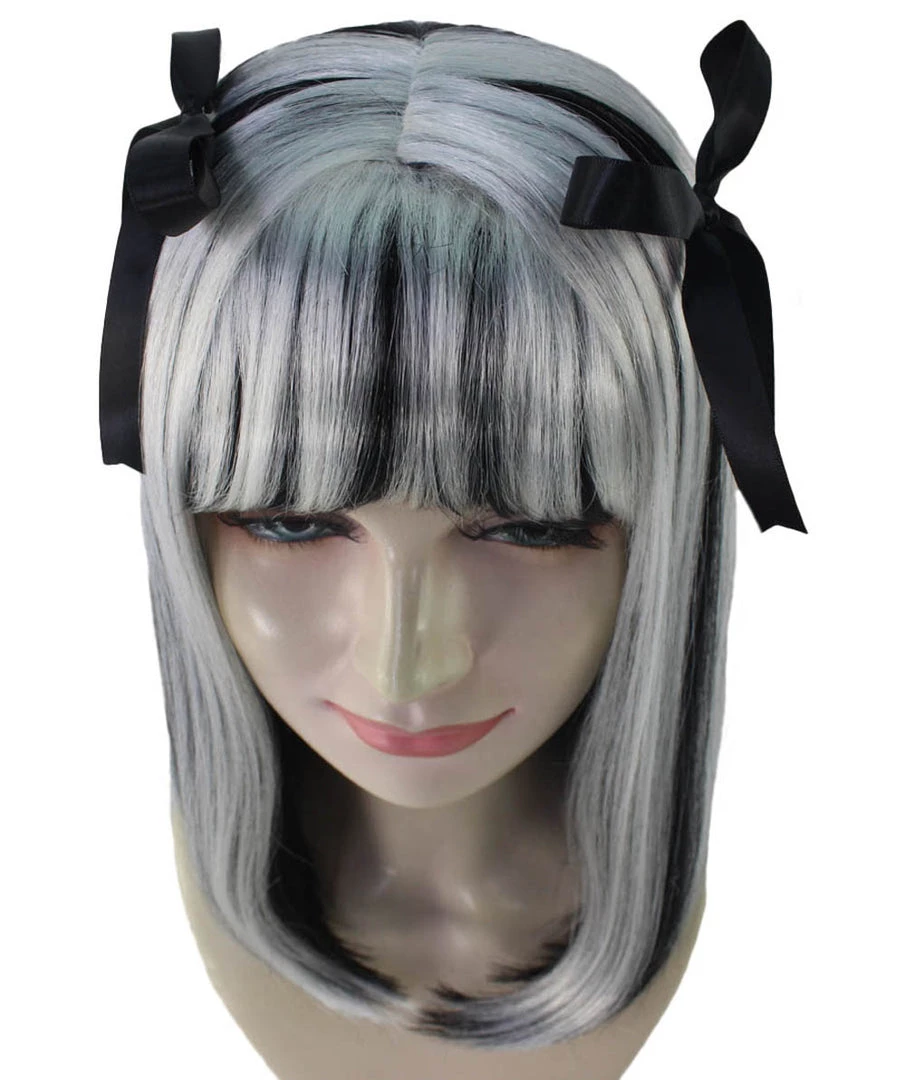 HalloweenPartyOnline Men’s Womens Ghostly Zombie Wig With Ribbons | Two Tones Black And Grey Scary Wigs | Premium Breathable Capless Cap