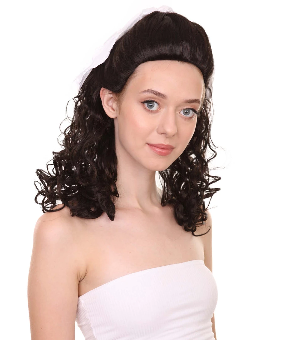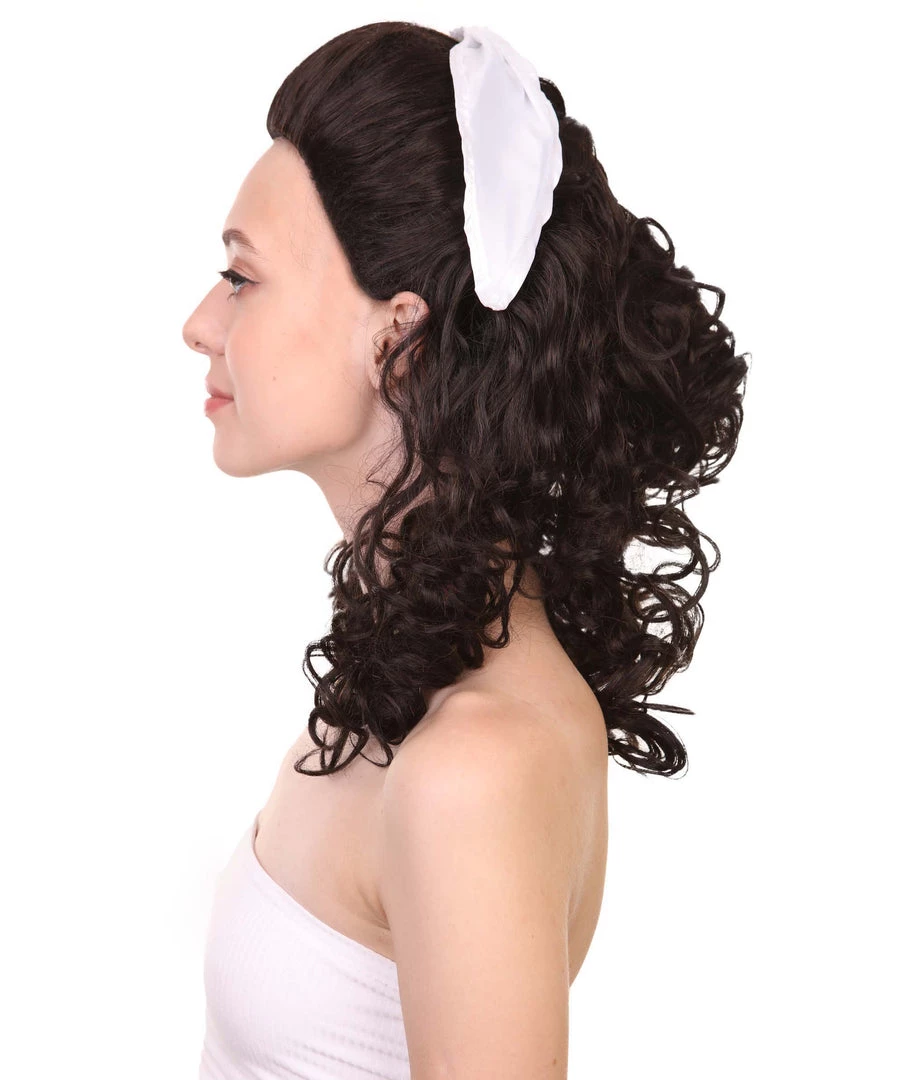 HPO 60’s Homemaker Womens Wig With Headband | Black Vintage Wig | Premium Breathable Capless Cap