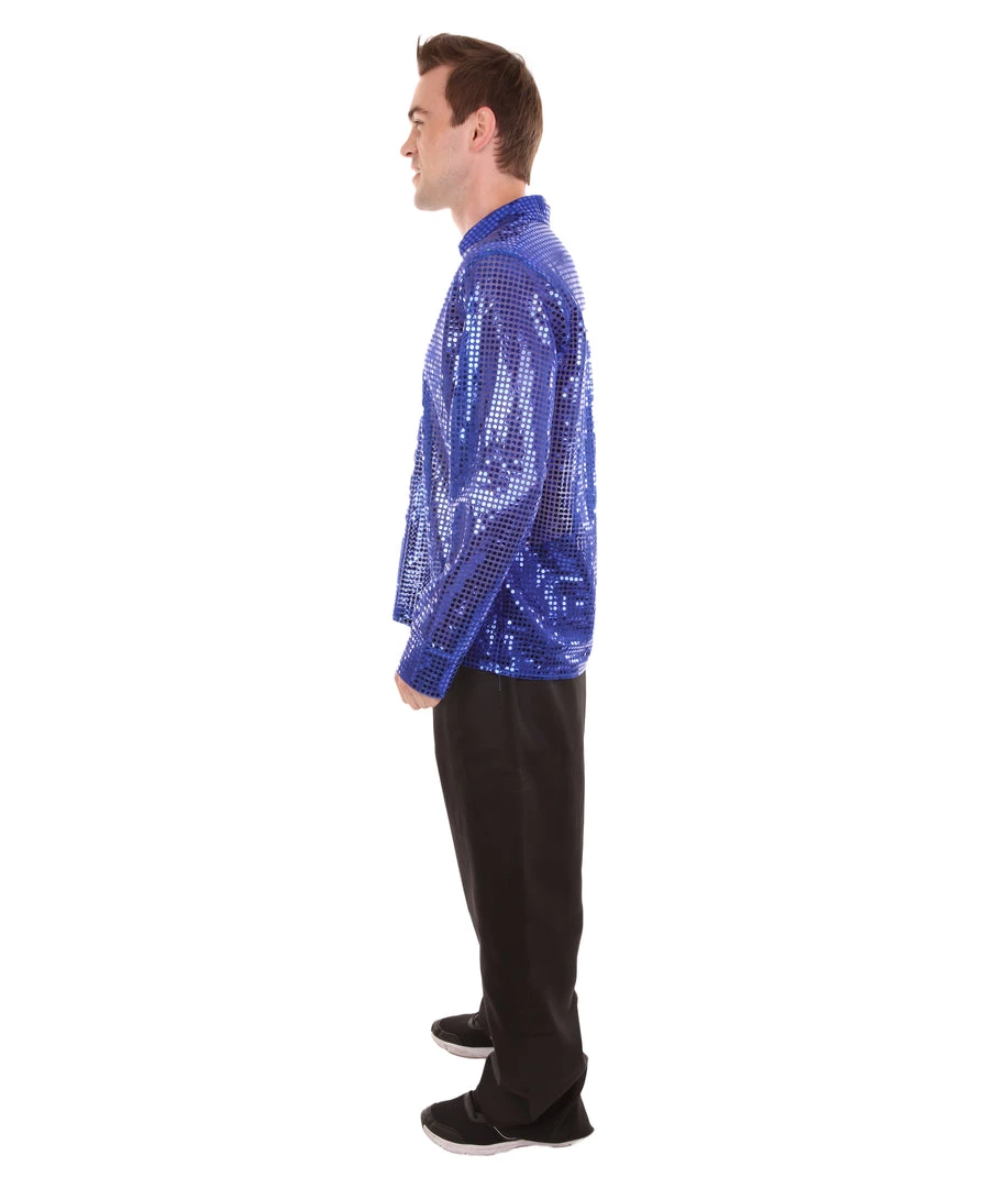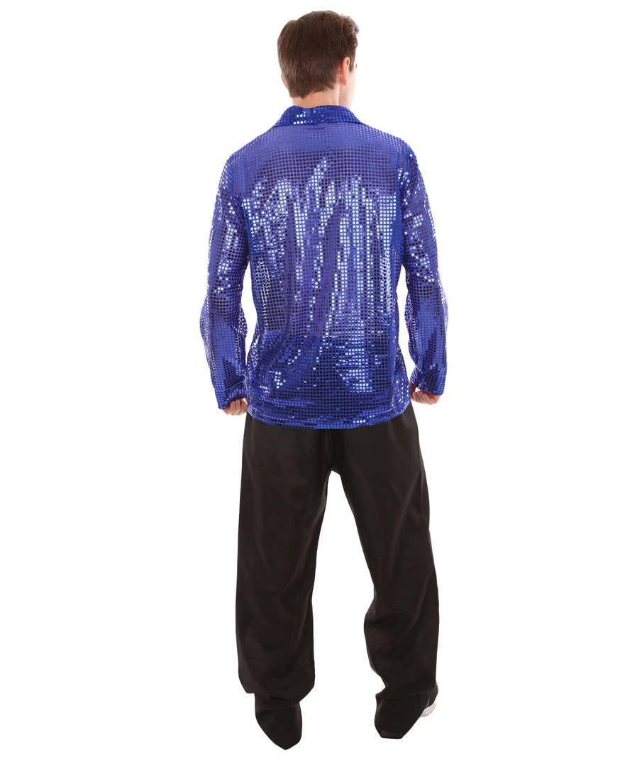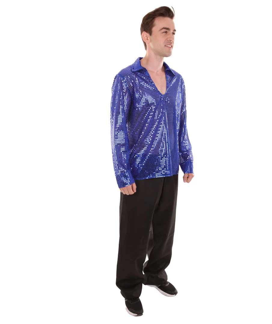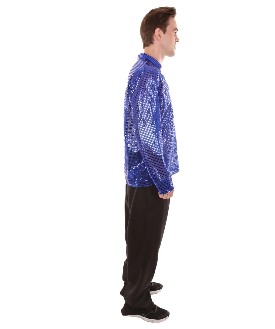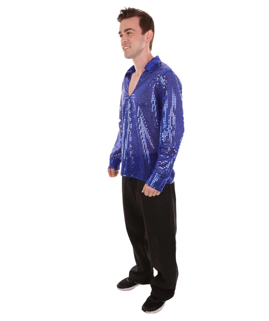 HPO Adult Men’s 70’s Disco Sequin Shirt Costume | Blue Vintage Cosplay Costume