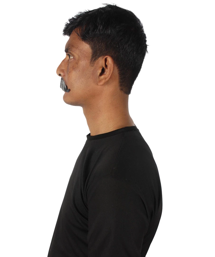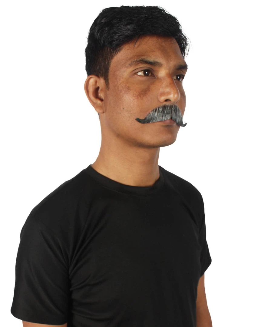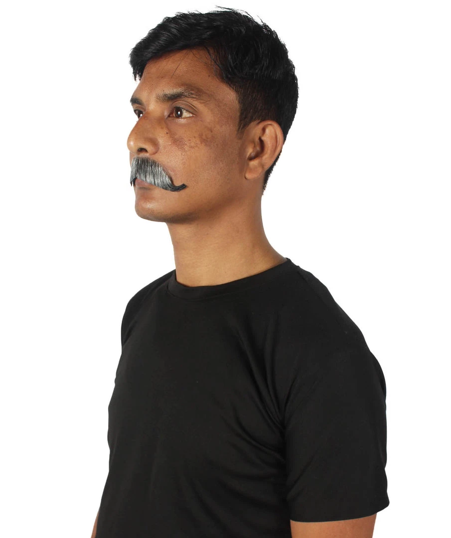 HPO Adult Men’s Fake Human Hair Western Grandpa Mustache | Mixed Black And Grey Color