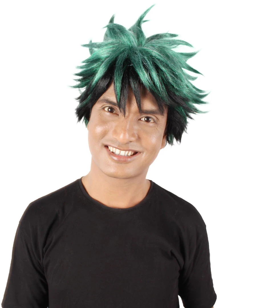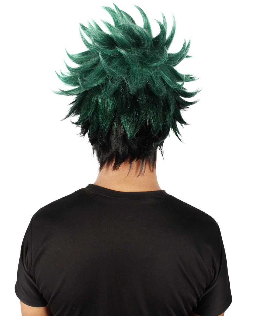 HPO Adult Men’s Japanese Superhero Manga Dark-green Spiked Wig