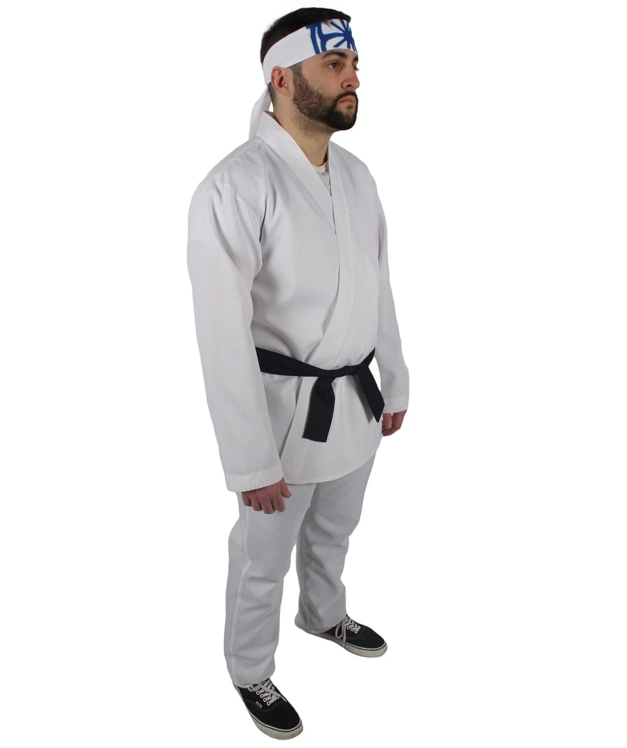 After being bullied by some local kids, this youngster met an amazing mentor who taught him karate for self defense. Soon enough he was taught kindness, integrity, and how to fight back when it matters. Cosplay this iconic character with our white karate costume bundle! If you’re a positive person with the ability to take down your opponents (but also believe in kindness and peace) this cosplay is perfect for you. This bundle comes with a black belt and a headpiece, both made with breathable fabric to last through all of your karate adventures!