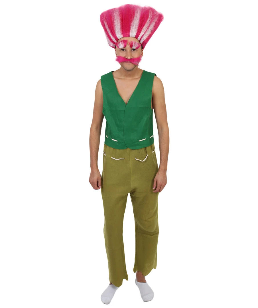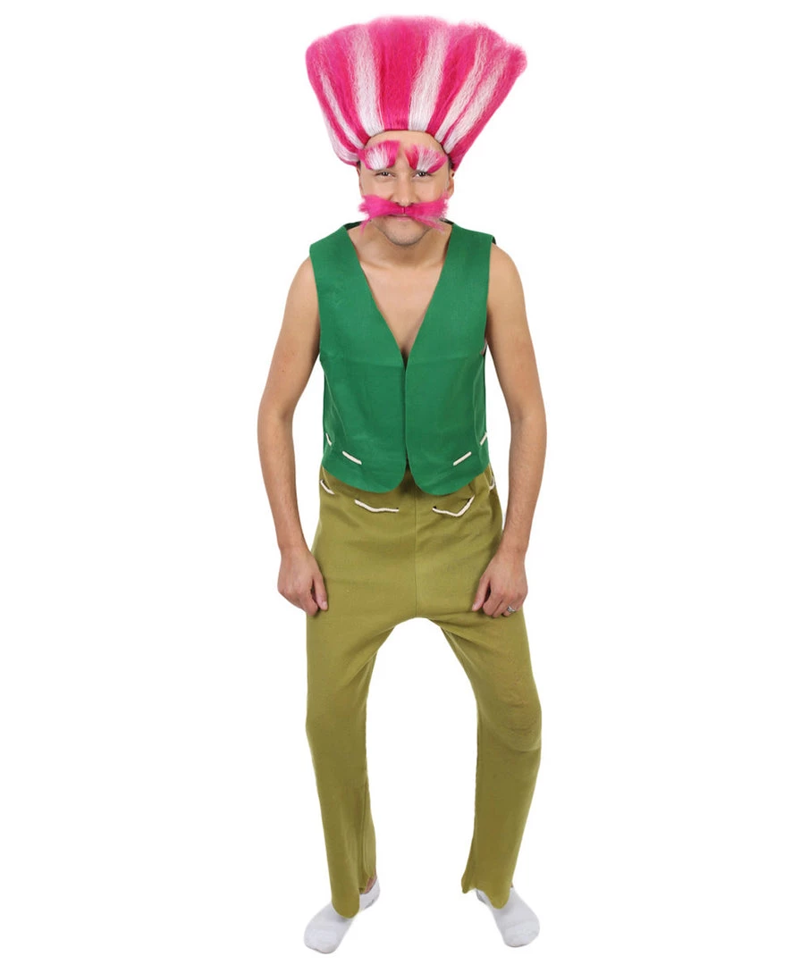 Don’t let his old age fool you – this peppy king is the bravest troll in all the land. He uses his love for pop music to protect his happy-go-lucky land and makes sure to never leave a single troll behind! He may be a little scatterbrained in his old age, but if heever misplaces anything, it’s usually because it’s stuck in his hair. This green vest and beige pant combination will embody his sweet look and intimidating strength. Make sure to complete your peppy king costume with our king troll wig to imitate his frazzled and fluffy pink hairdo that also comes with eyebrows and a mustache to match. Be prepared to get extroll-ordinary attention wearing this at your next Halloween or costume party!