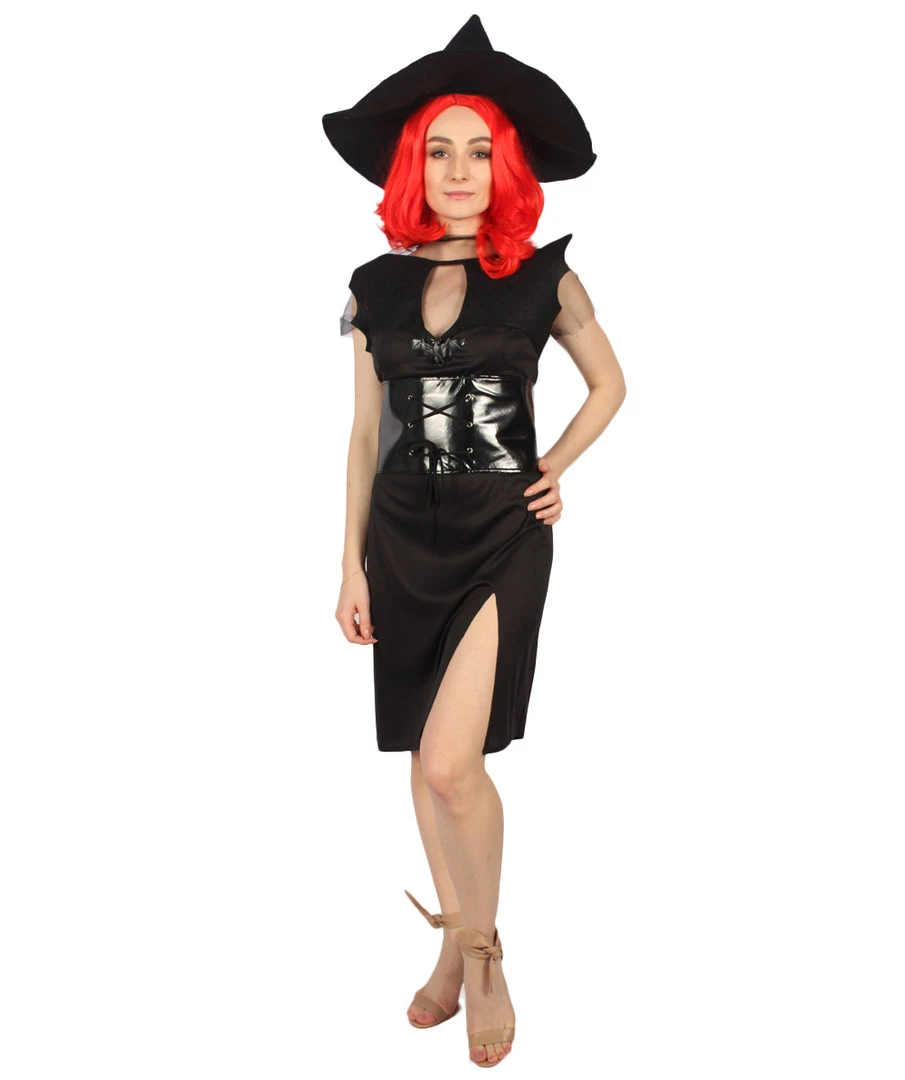 HPO Adult Women Bat Witch Costume | Black Halloween Costume Men’s