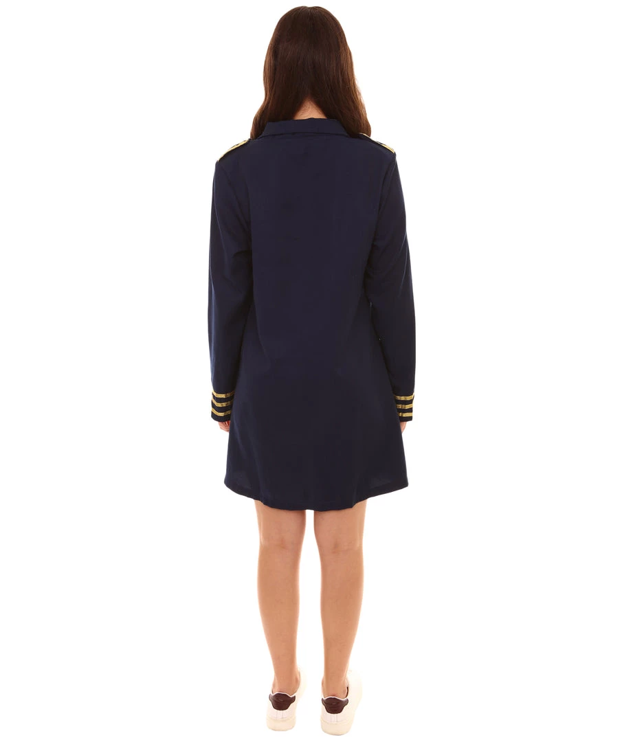 HPO Adult Women’s Air Hostess Dress Costume | Blue Cosplay Costume
