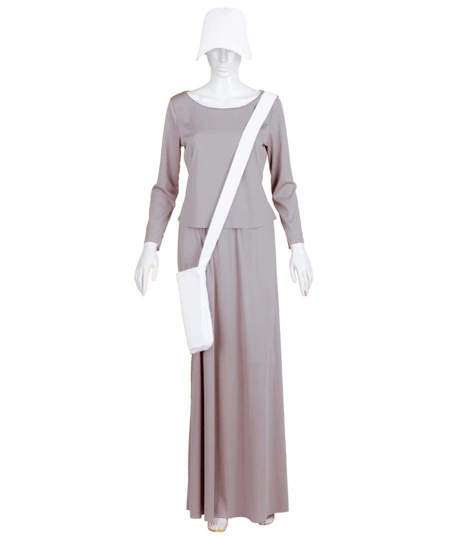 HPO Adult Women’s Dress Handmaid Costume With Bag And Bonnet | Grey Cosplay Costume