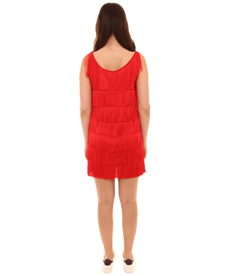Our Fiery Red fringe flapper dress is a timeless classic and sure to be a hit at any event! Whether you’re going to a 1920?s themed party or attending a Halloween party, let us help you make your search for the perfect outfit easy. Pair with our Hollywood Feather Flapper Wig (HW-031) to complete your fabulous look!