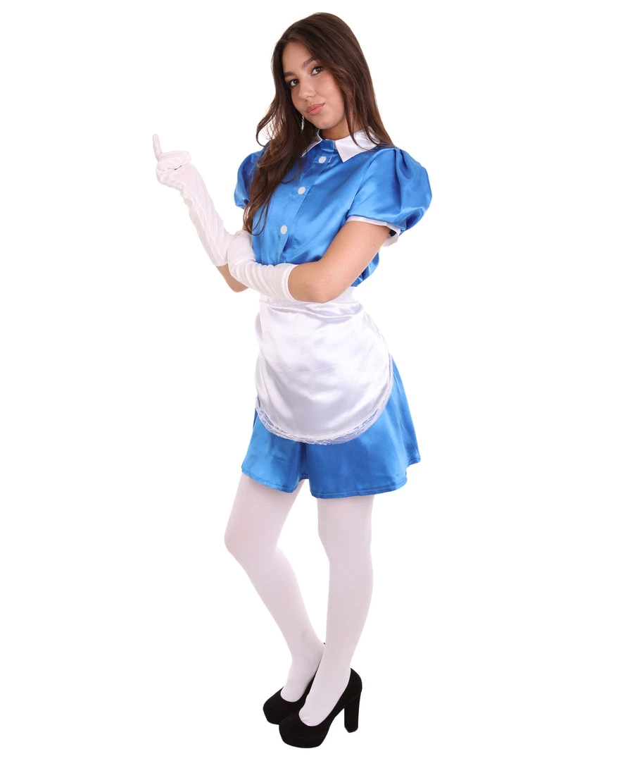 HPO Adult Women’s French Apron Maid Uniform Costume | Royal Blue Cosplay Costume