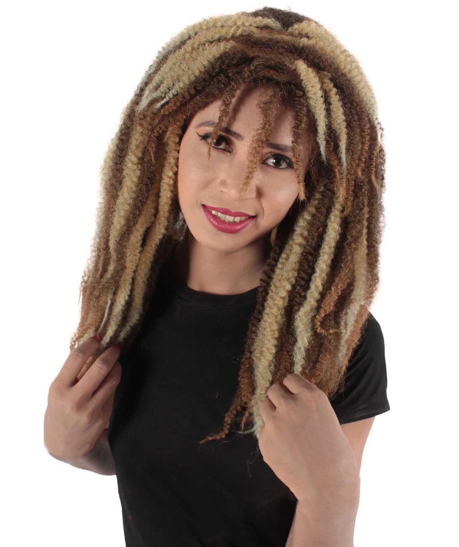 Making your start as a songwriter is tough, but with one shot, you could be featured on America’s next reality singing show to showcase your talented voice and your new and impressive hairstyle. One does not wear the dreadlock the dreadlocks wear you, and now this Halloween season, you could have that look whether you want to be a Rastafarian to just having that unique look perfect for finishing off your costume. Made with cruelty-free synthetic fibers, these long blonde dreads will last for long time use. Capless Cap Construction is adjustable for a breathable and comfortable fit that will satisfy any attention-hungry contemporary r&b star. The adjustable design can fit head size up to 22 inches and be adjusted down for children five and up. Appropriate for men, women, and folks of any gender.Whether you are celebrating 4/20 or just embracing peace and love 60s style this is the perfect wig in which to party. Rastafarian or Hippie? This wig can be styled either way.