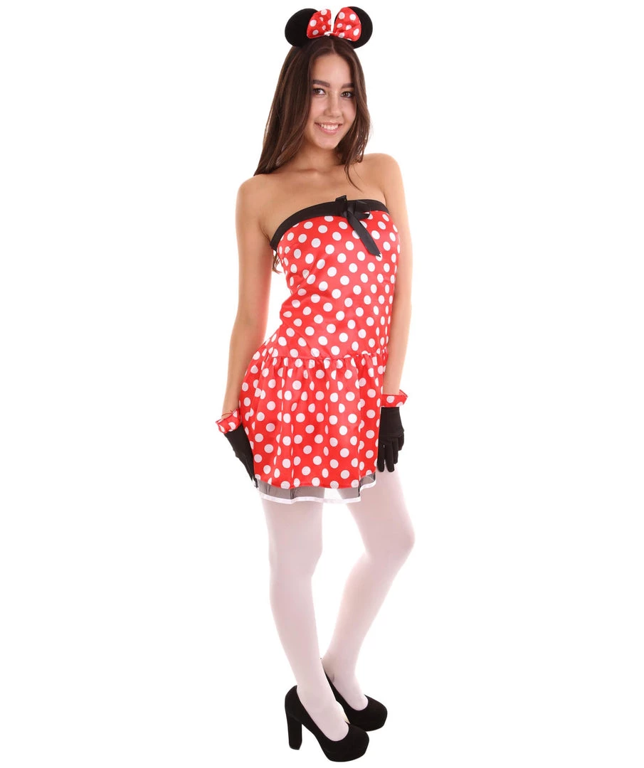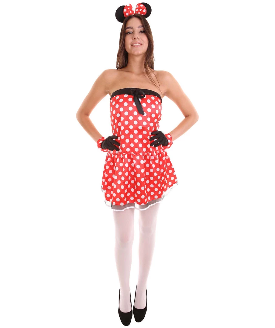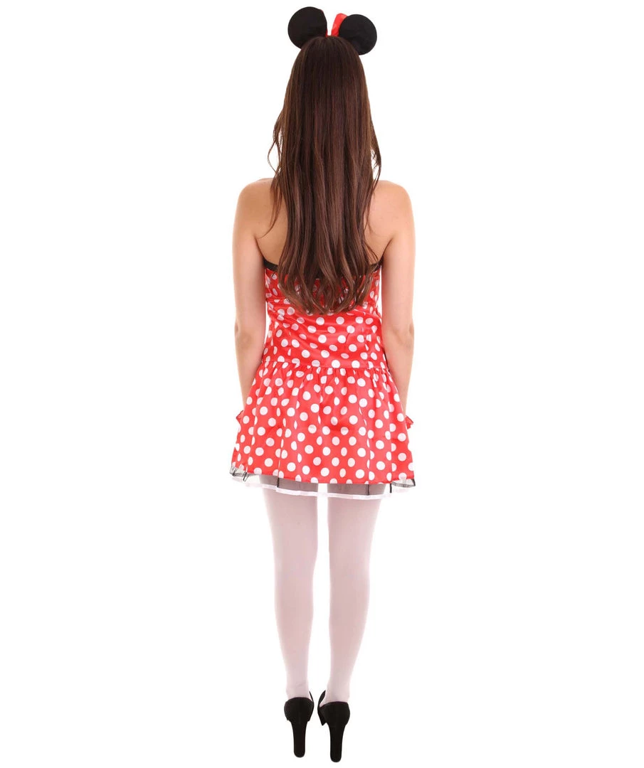 Minnie Mouse created by Walt Disney is cute, has lots of styles, and she can dance and sing. She is Micky Mouse’s boyfriend and while she is incredibly sweet and sincere, she will fight along Micky’s side. This costume highlights her cute personality in her signature red and white polka dots. This Minnie Mouse party costume will make you the center of attention this Halloween or your next cosplay event!