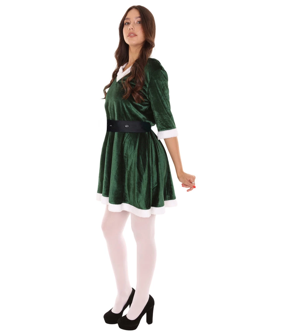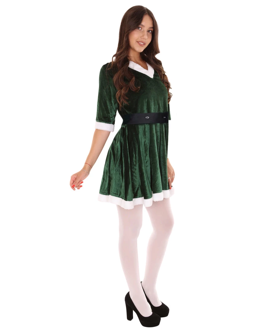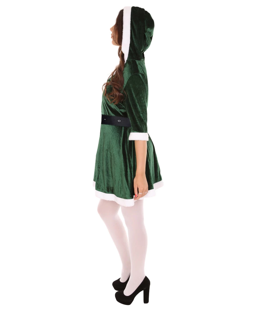 HPO Adult Women’s Mrs Santa Claus Hooded Dress With Belt Costume | Green Halloween Costume