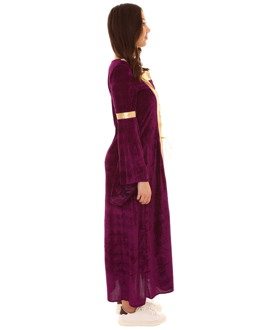 Whether you’re attending a Renaissance fair, performing in a play, or simply dressing up for Halloween, our timeless royal purple Renaissance gown with gold lace up detail will help transform you effortlessly. Pair with our long golden blonde Renaissance wig with braided crown detail (HW-132) to complete your look!