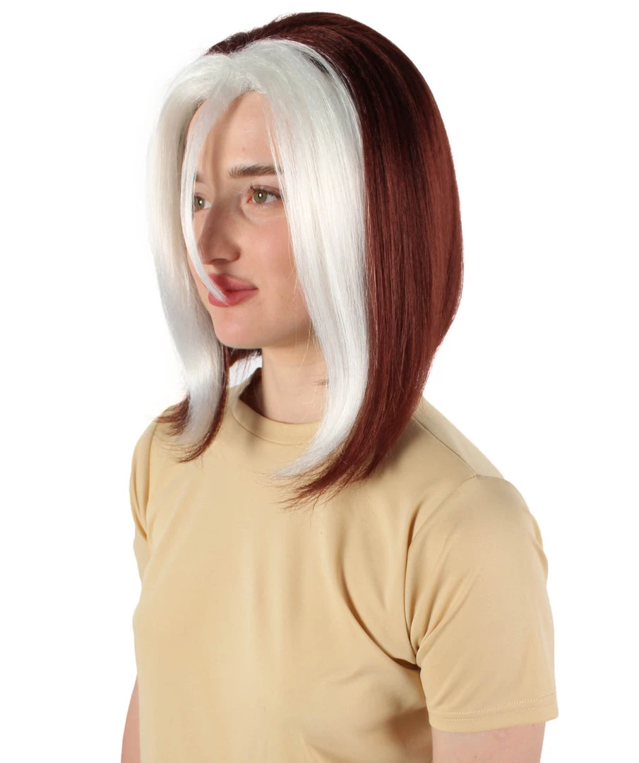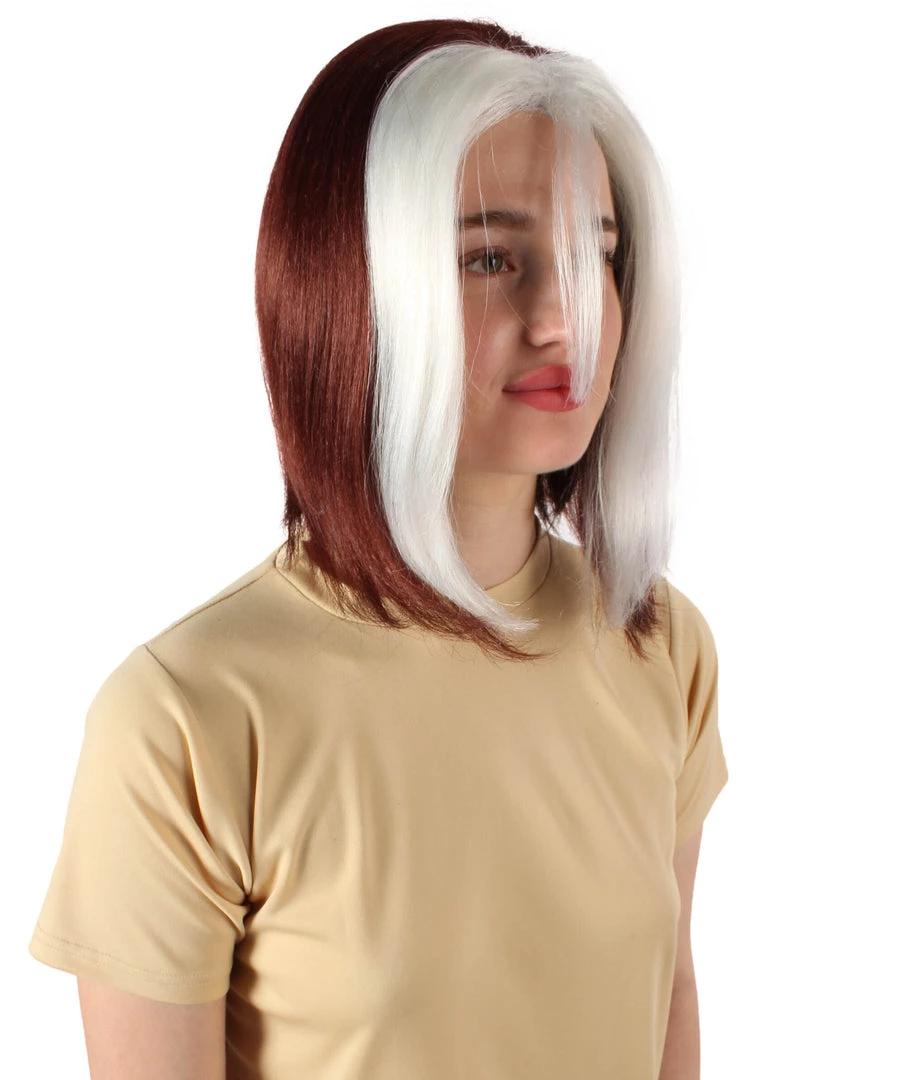 Enjoy cosplaying this member of a superhero association whose power is to absorb the physical strength and superpowers of anyone by touching them. Apart from her power-absorbing superhuman abilities, she’s set apart by her unique hair, featuring distinct white streaks in her natural burgundy hair. This hairstyle is also a major trend in pop culture that now you can mimic with a wig! No matter what event you attend, our burgundy bob with a white front pieces is sure to make you stand out in the crowd. Be it a Halloween, a cosplay convention or a party, this synthetic fiber flame-retardant wig works everywhere. Plus, it comes with an adjustable cap of 18-22 inches in diameter to accommodate both adults and kids, and is designed for maximum breathability and comfort.