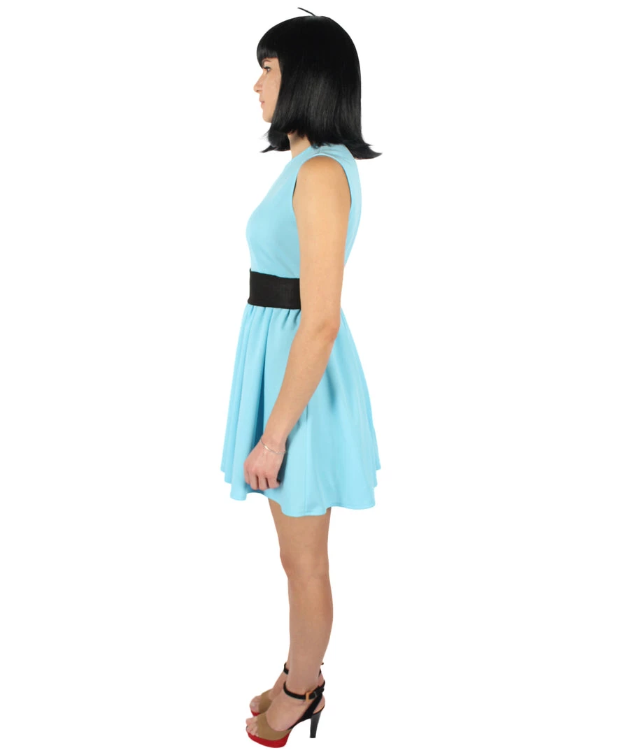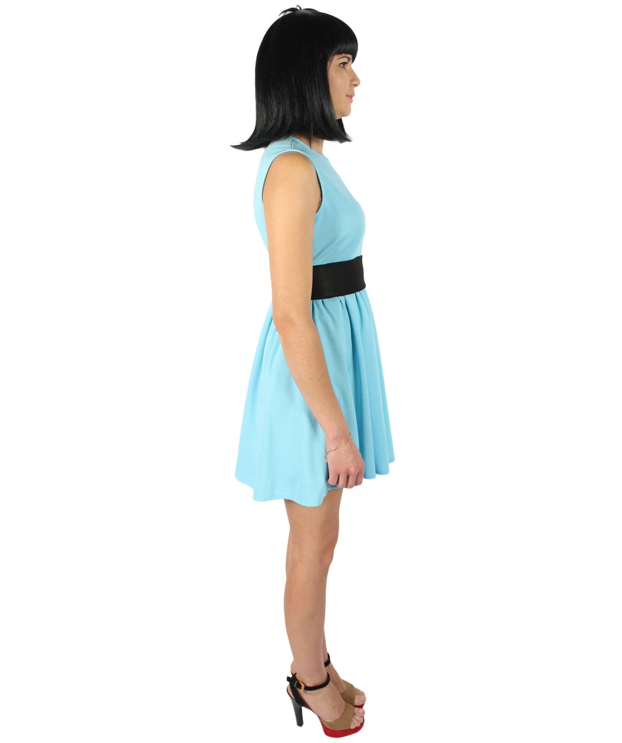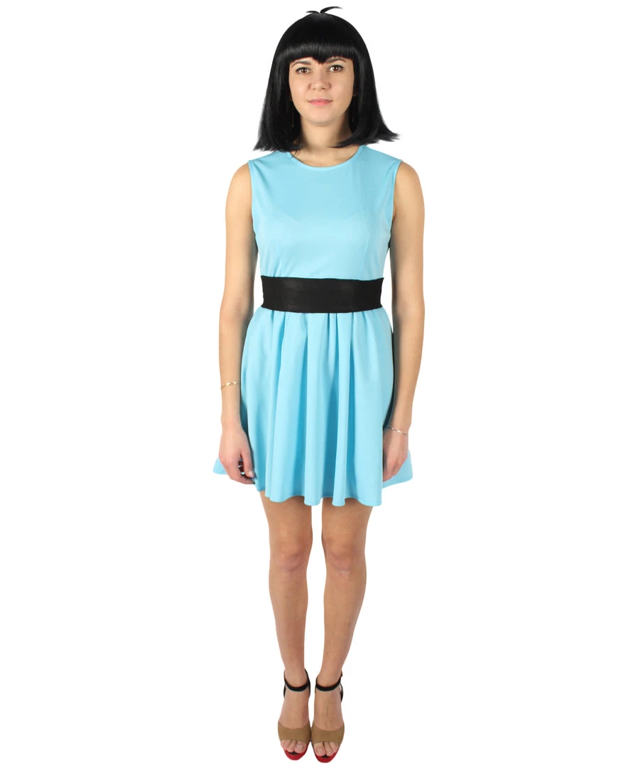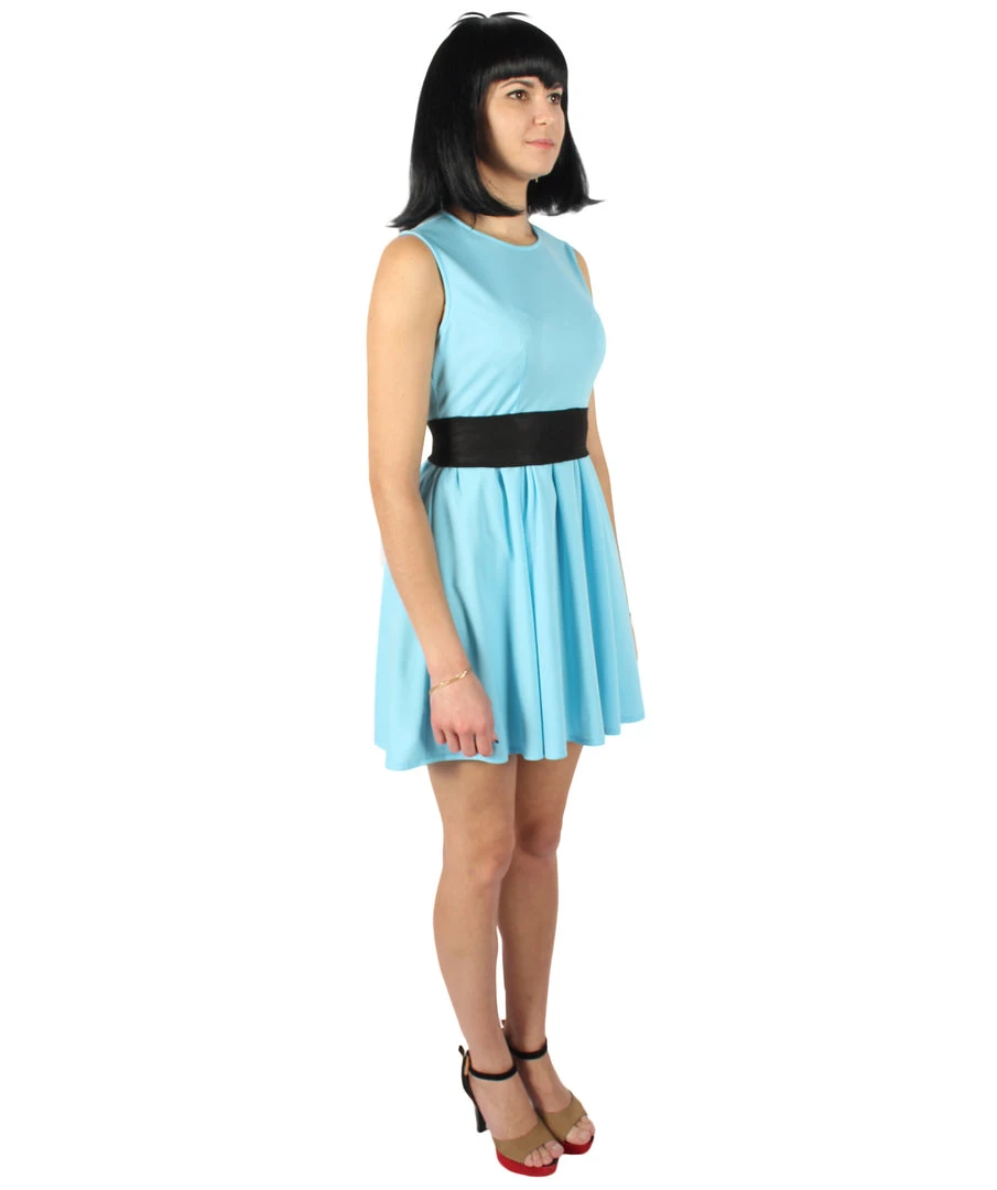 This character is part of an iconic trio that stirs up so much nostalgia! Our bubble costume is inspired by one of our favorite cartoon superheroes who is dubbed the “”sugar”” and “”joy and laughter”” out of her three superhero sisters. This short, sky blue bubble costume comes with a black stripe “”belt”” in the middle to mimic her look. Combine with one of our Blonde Pigtails wigs and fly off to your next Halloween or cosplay party! Made with synthetic fabric to ensure maximum breathability.