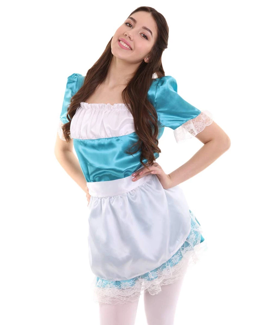 HPO Adult Women’s Traditional Maid Uniform Costume | Aqua Blue Cosplay Costume