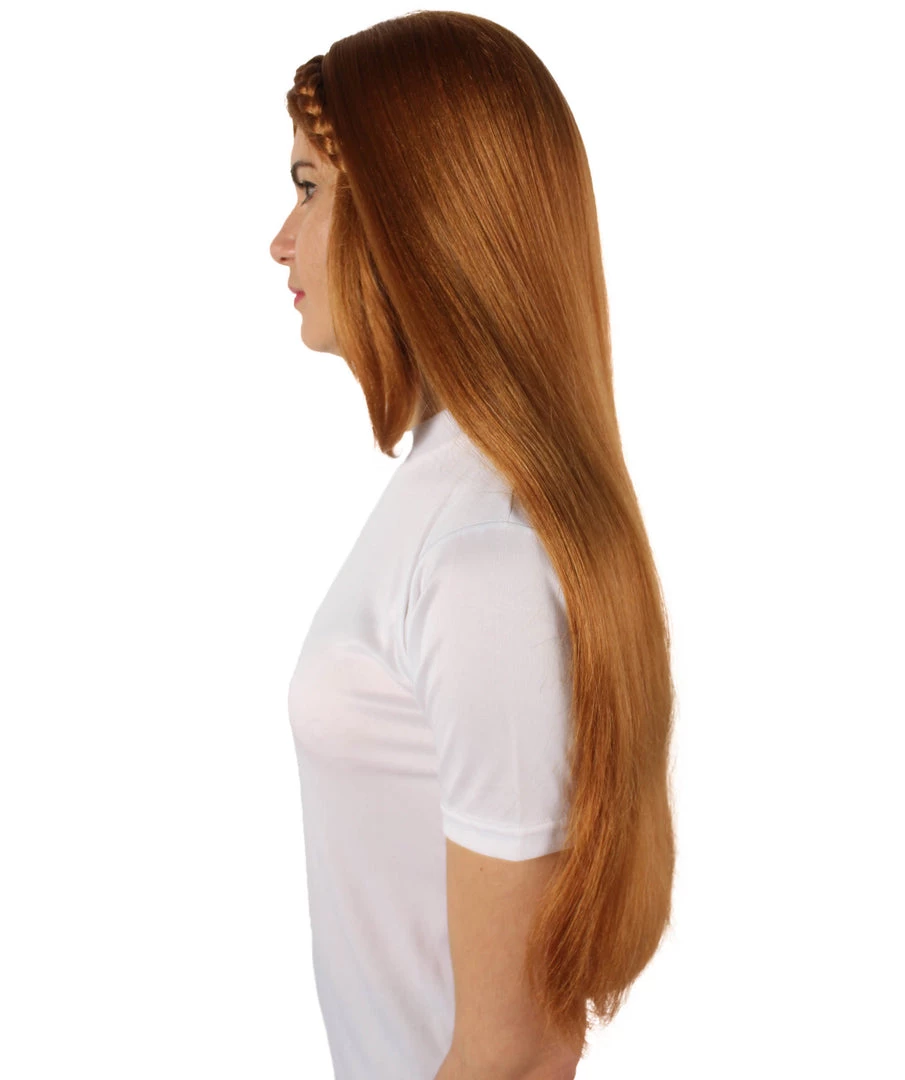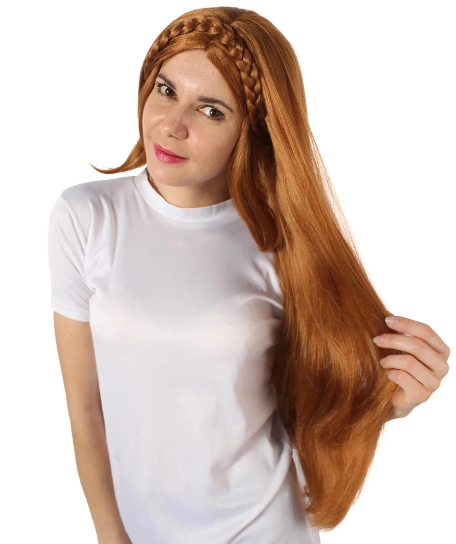 HPO Adult Women’s Video Game Pointy Ears Princess Brown Wig With Woven Braids