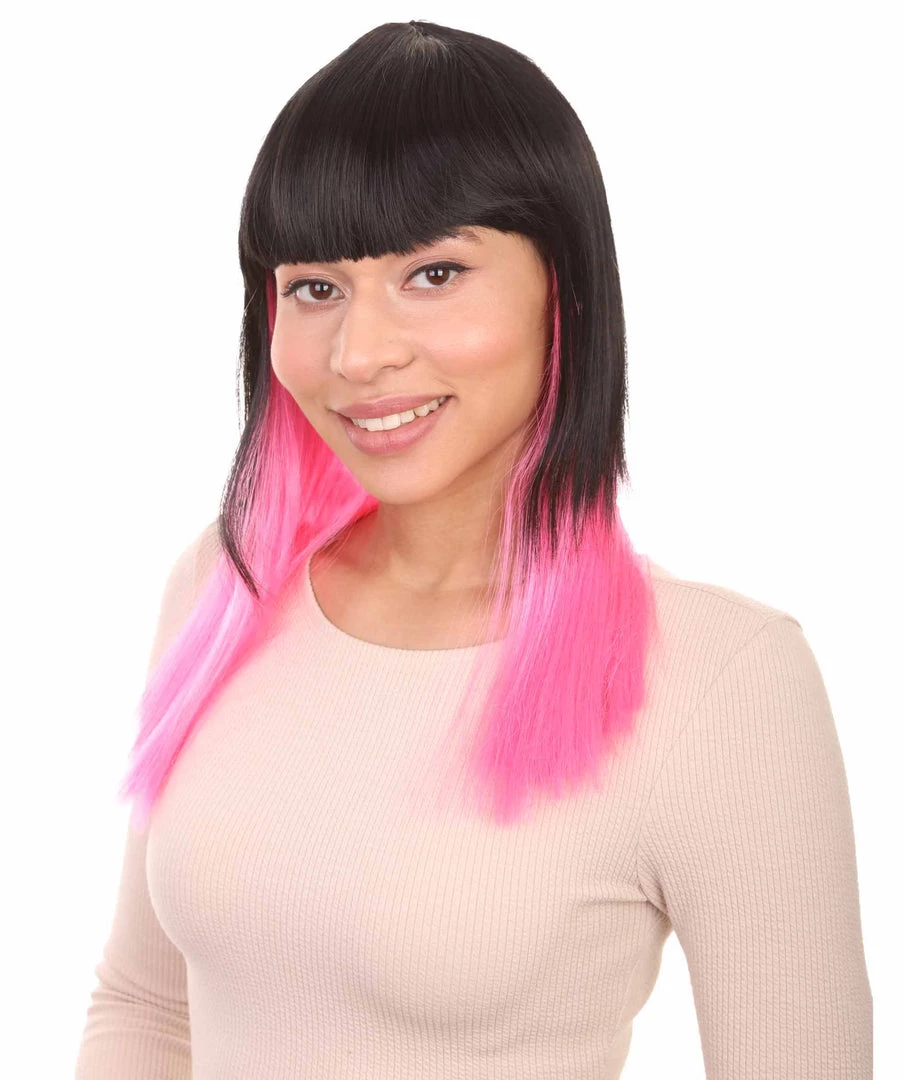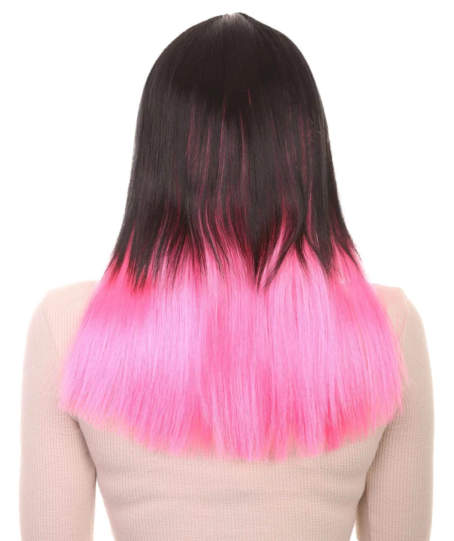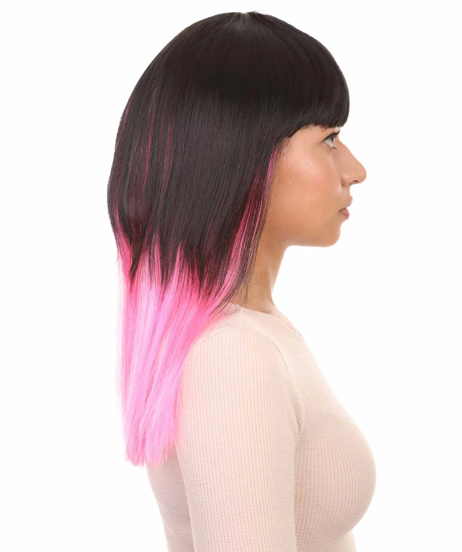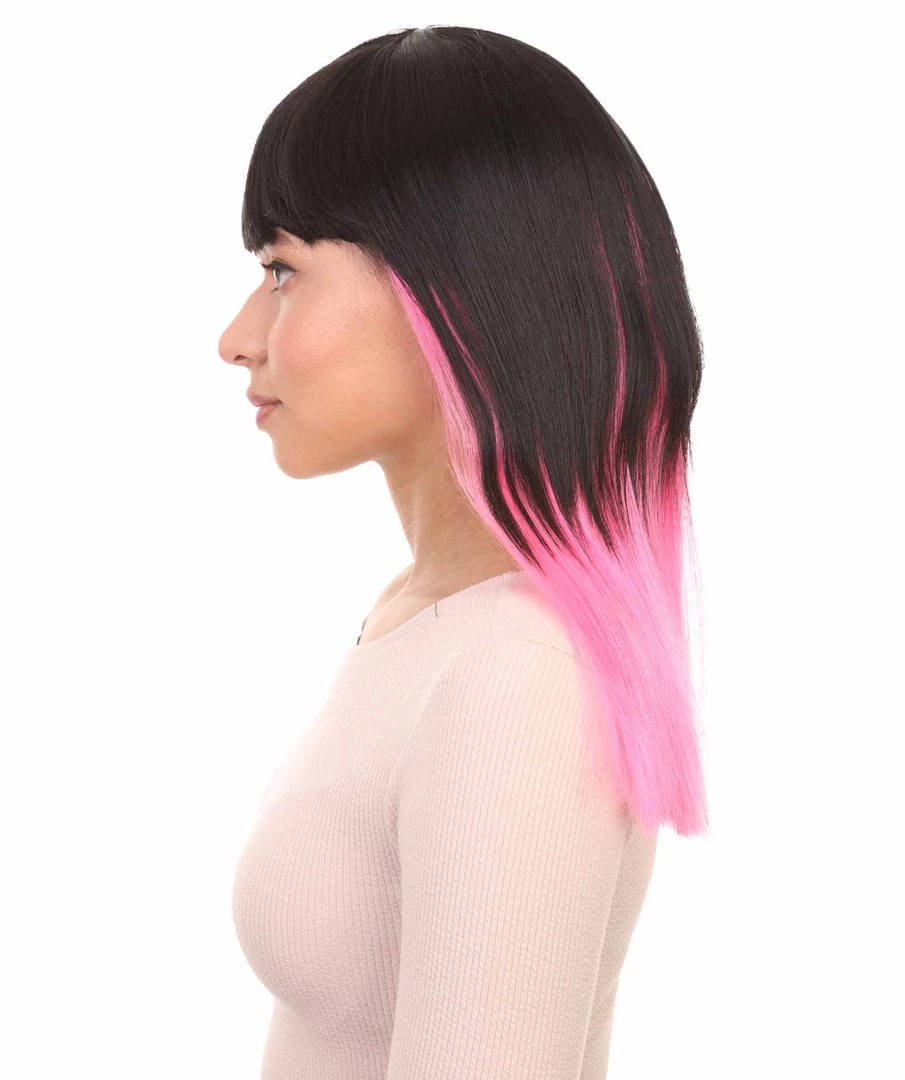 HPO Black Pink Bob Womens Wig | Long Fashion Cosplay Halloween Wig | Premium Breathable Capless Cap