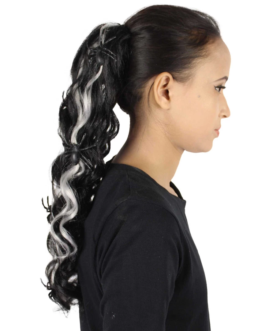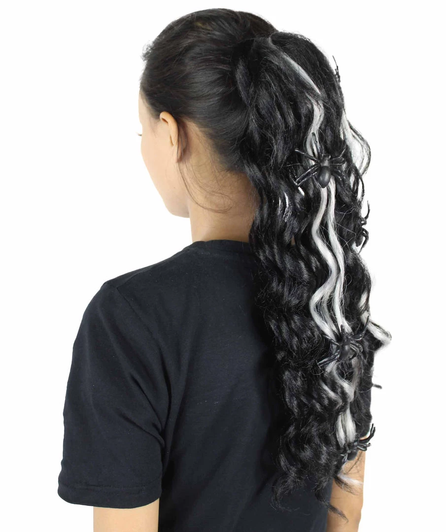 HPO Black Spider Hair Clips | Women’s Long Length Queen Of Spiders Hair Clips – Long Wavy Silver And Black Hair – With Scary Black Spiders