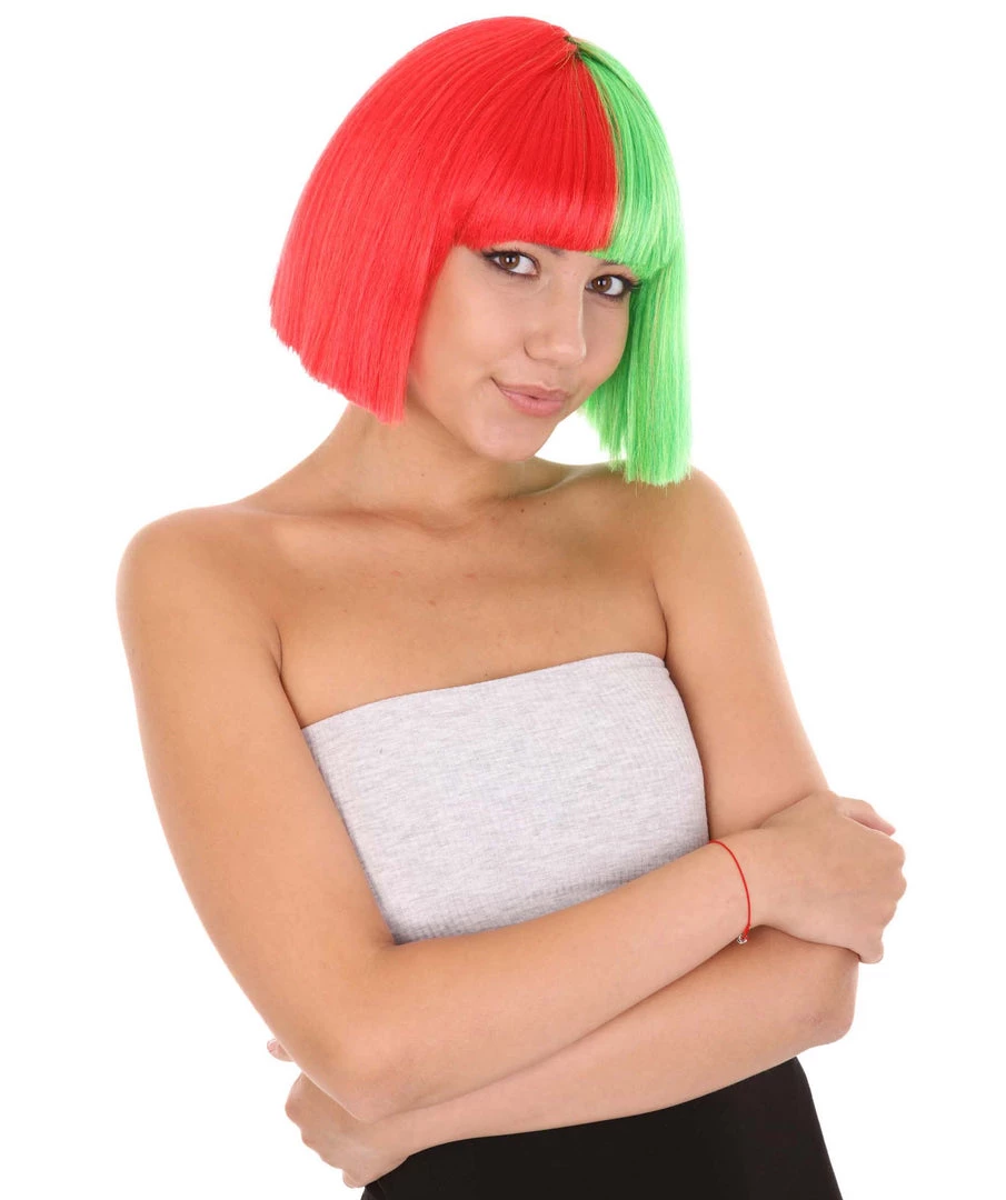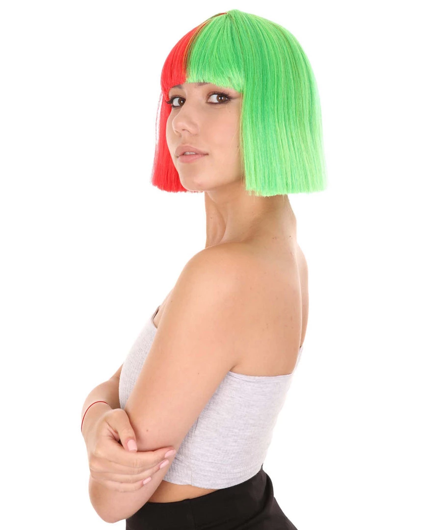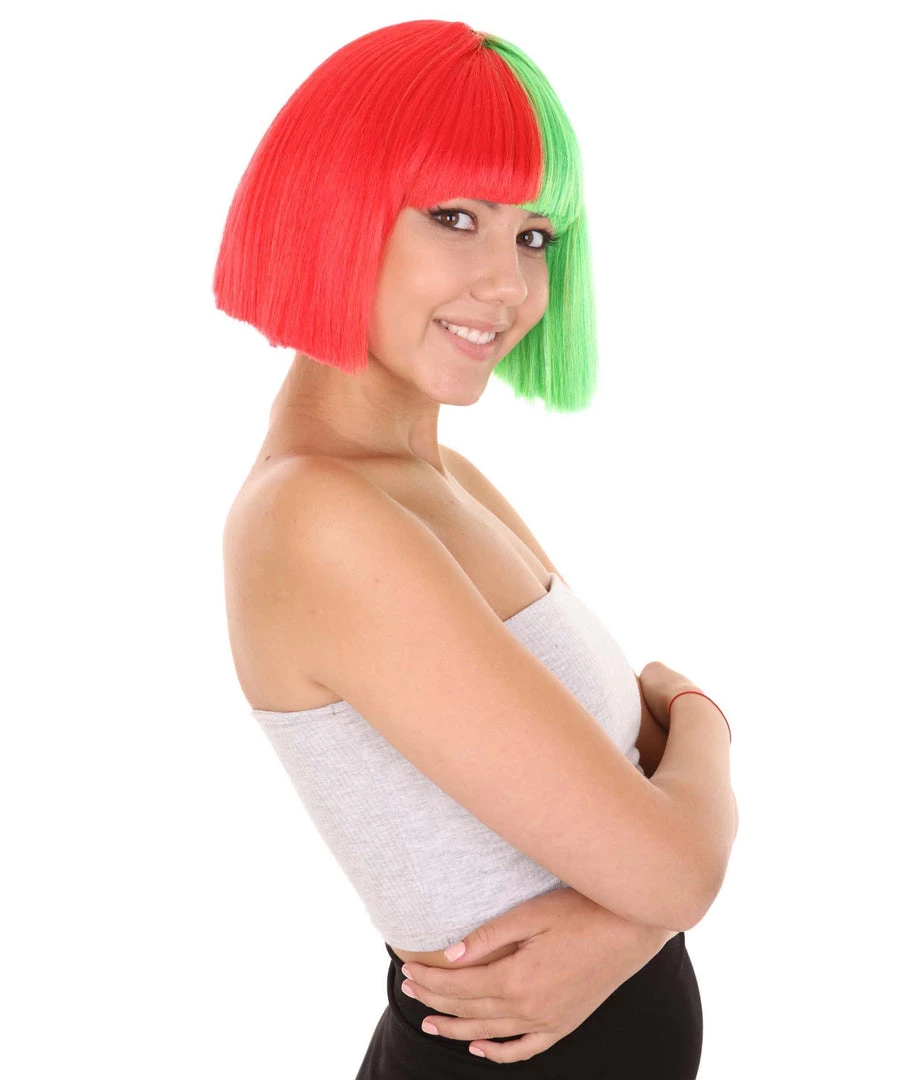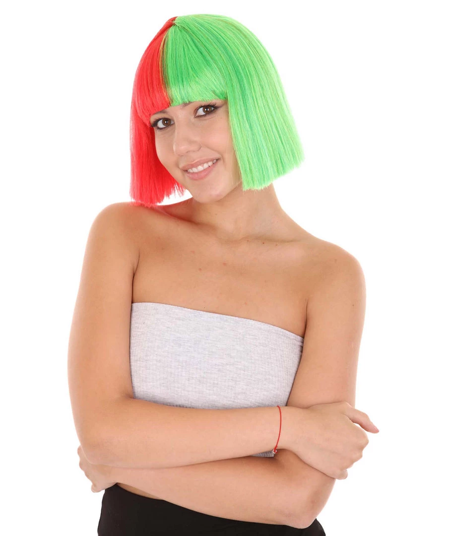 HPO Christmas Australian Singer Womens Wig | Red & Green Holiday Wigs | Premium Breathable Capless Cap
