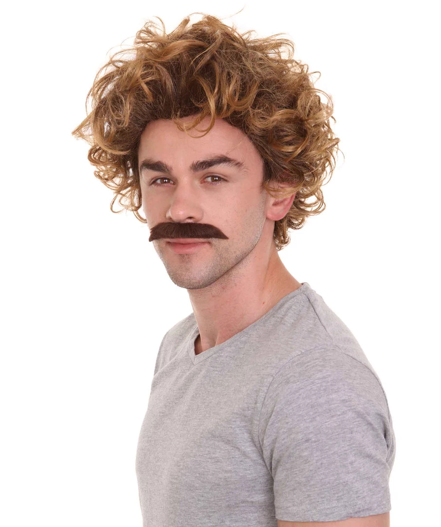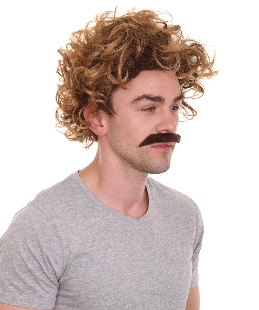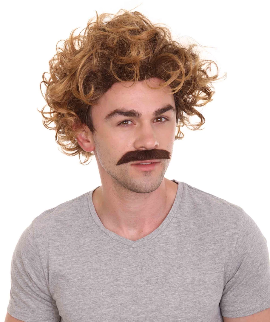 HPO Comedy TV | Mens Pro Wrestler Short Brown Curly Afro Wig And Mustache Men’s