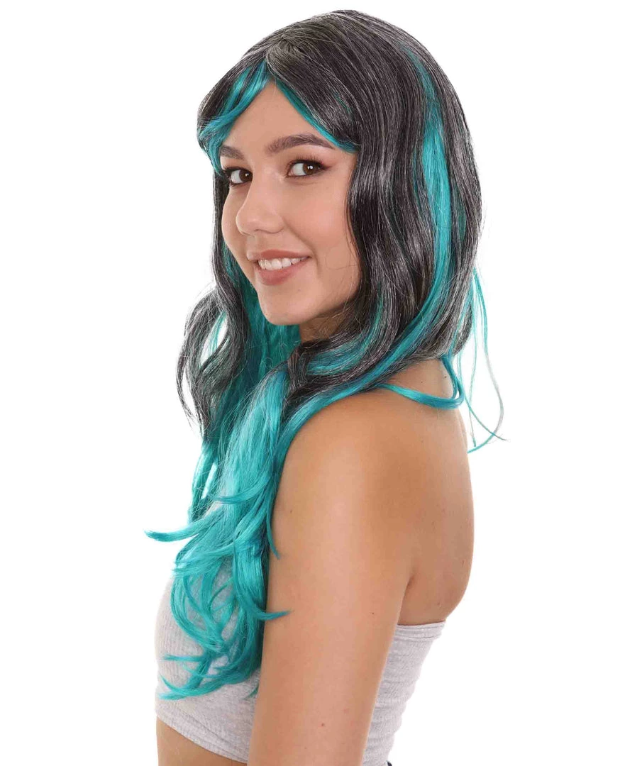 HPO Long Two Tone Curly Womens Wig | Grey/Blue Wig | Premium Breathable Capless Cap Men’s