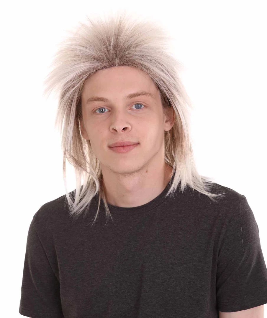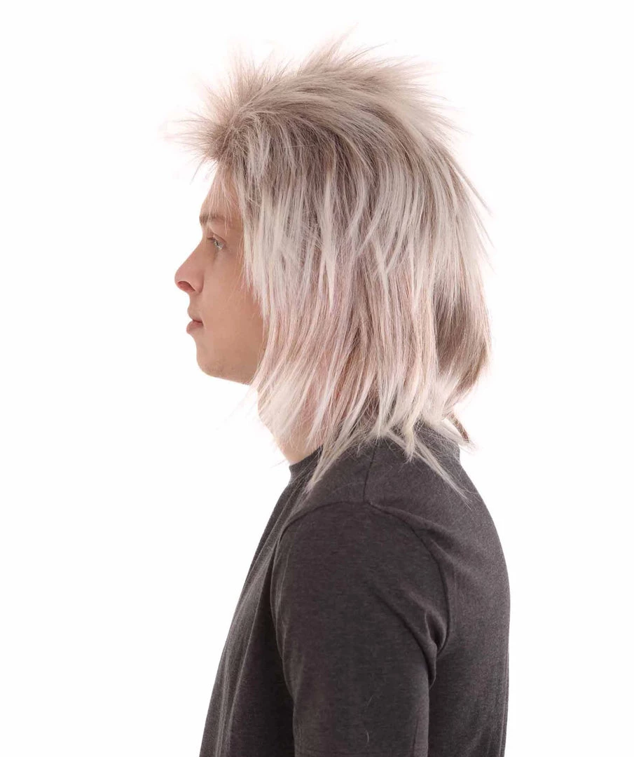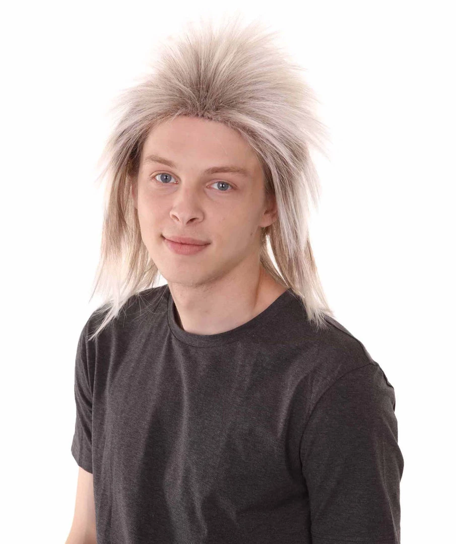 HPO Men’s 80’s Rock Mullet Mens Wig | Grey Cosplay Halloween Wig | Premium Breathable Capless Cap