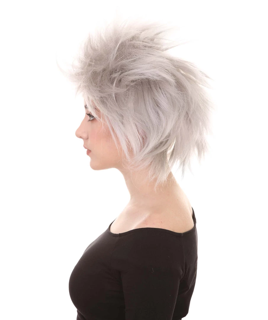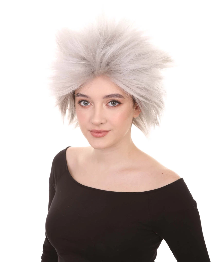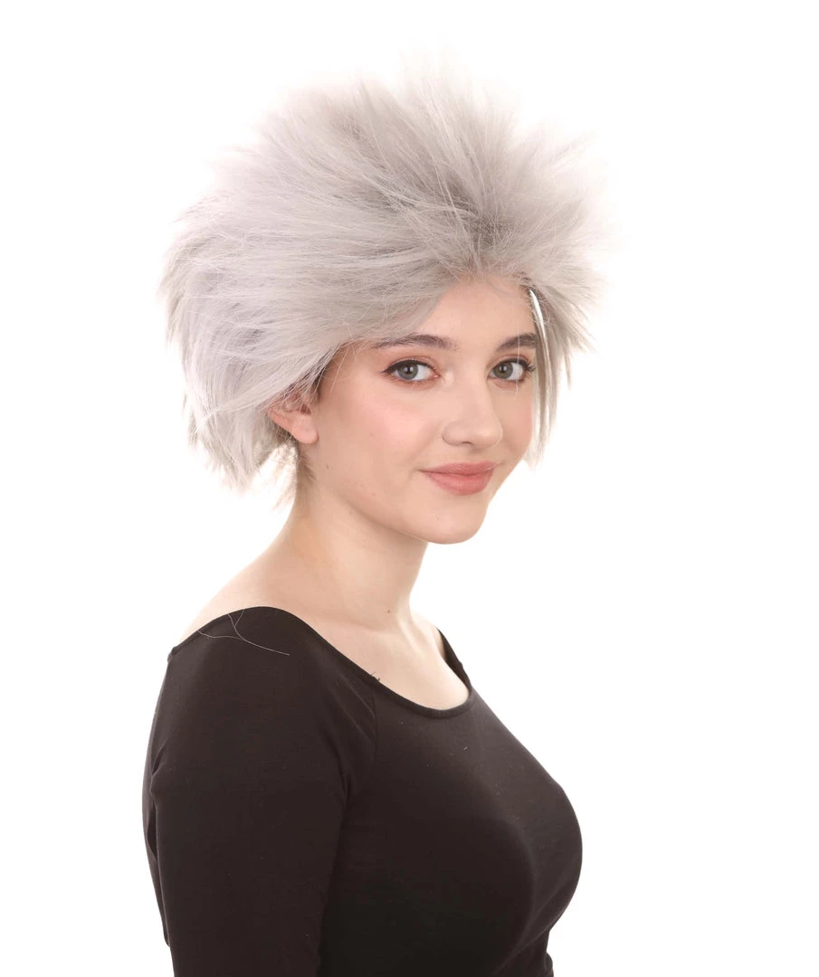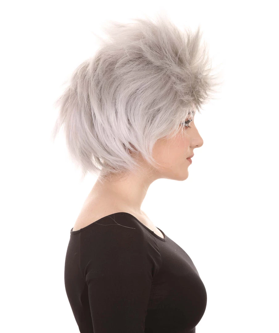 HPO Men’s 80S Adult Women Rock Style Wig | Grey Cosplay Halloween Wig | Premium Breathable Capless Cap