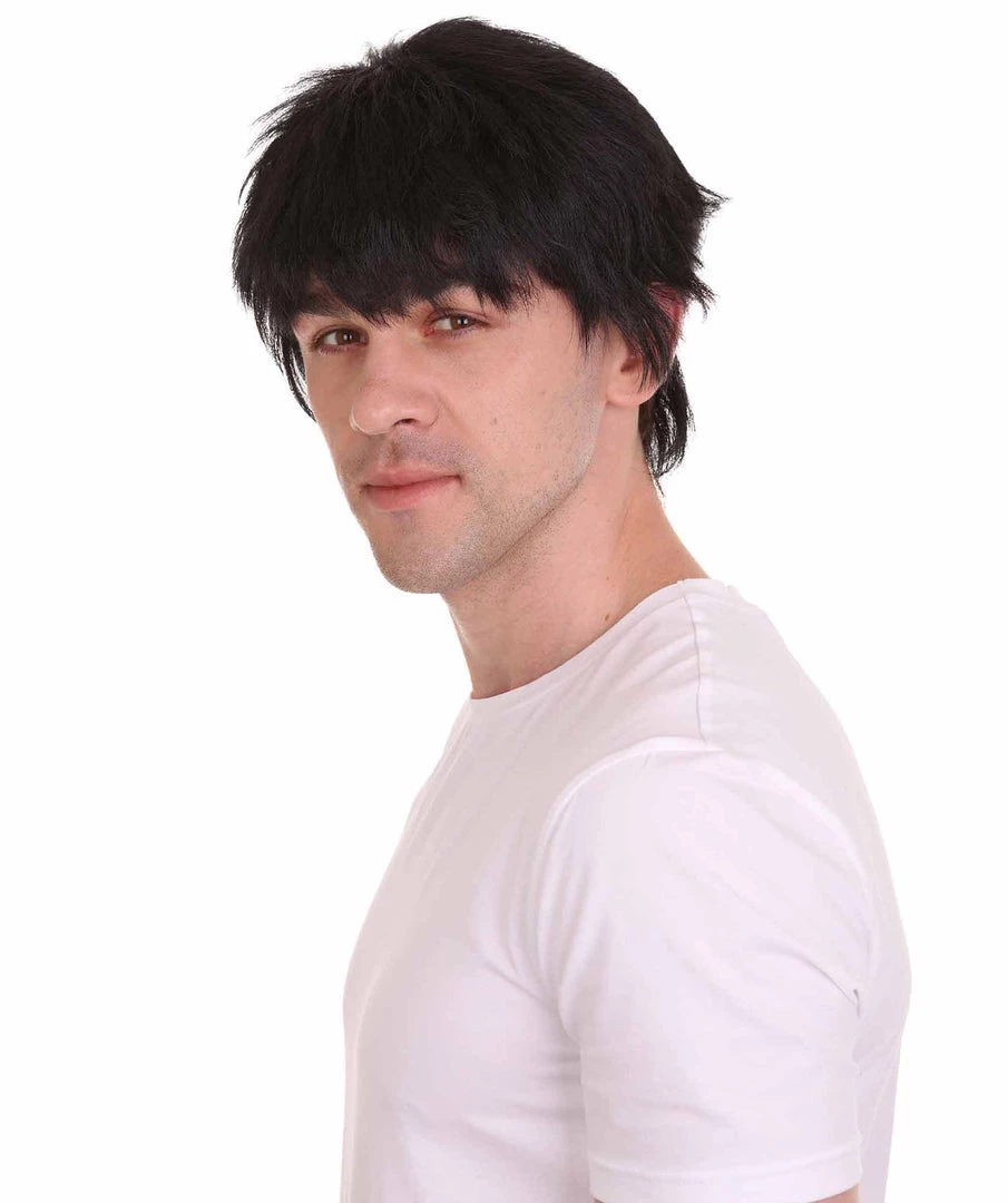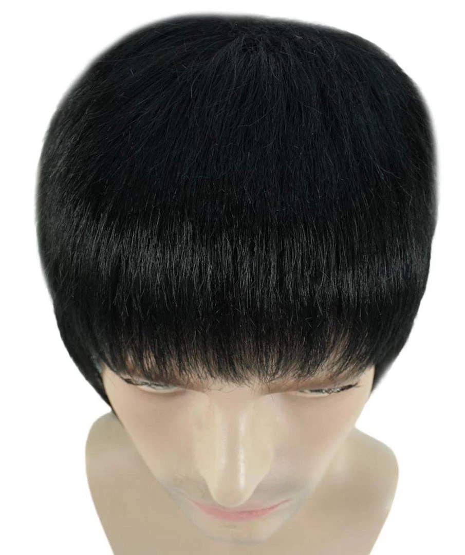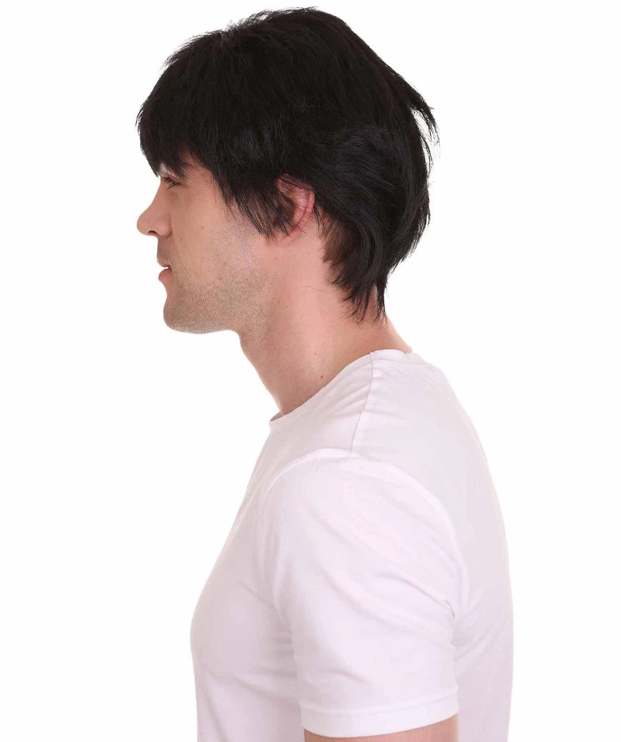 HPO Men’s Adult Mens Kung Fu Bruce Lee Wig | Black Cosplay Halloween Wig | Premium Breathable Capless Cap