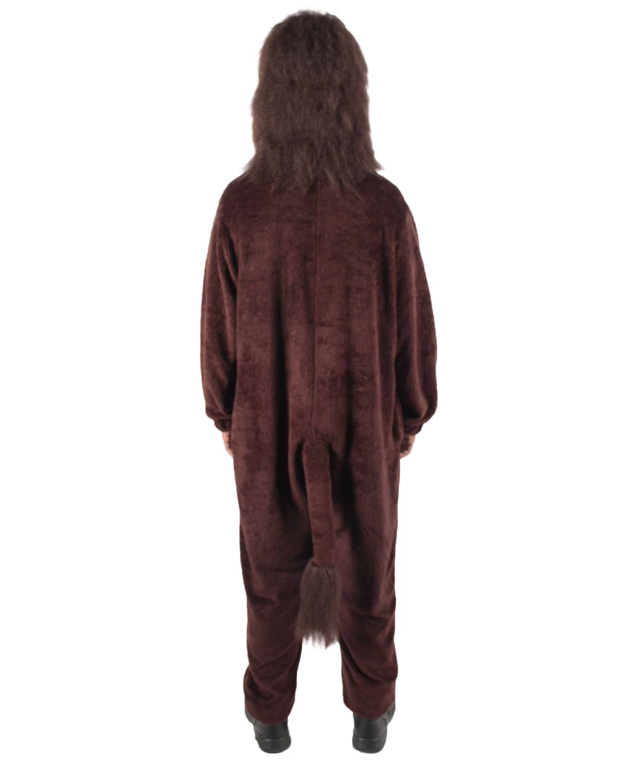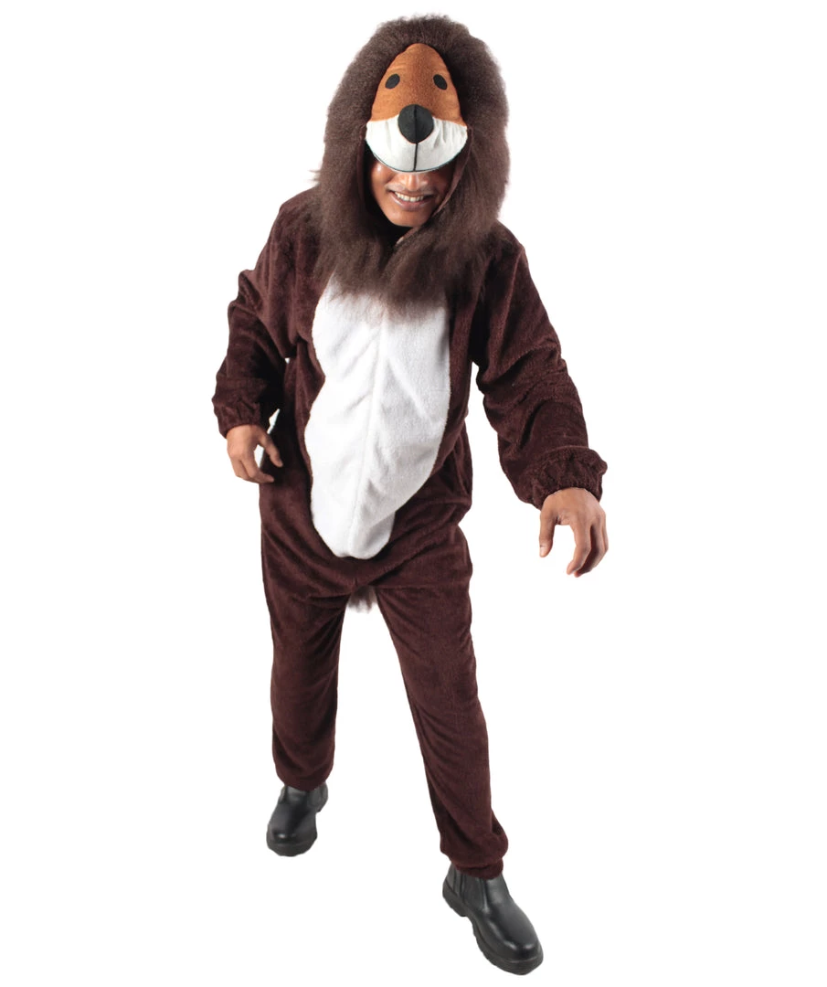 HPO Men’s Adult Unisex Brown & White Straight Long Jumpsuit Lion Costume Bundle