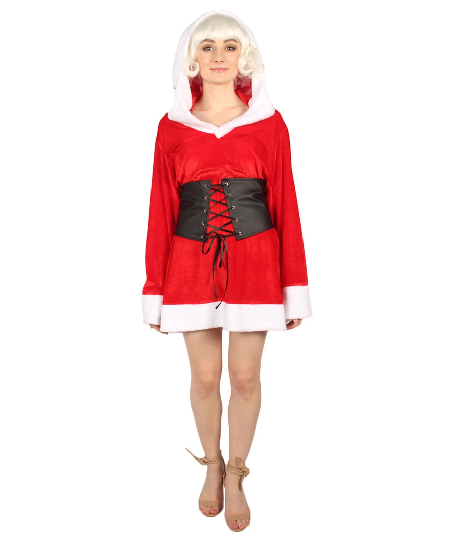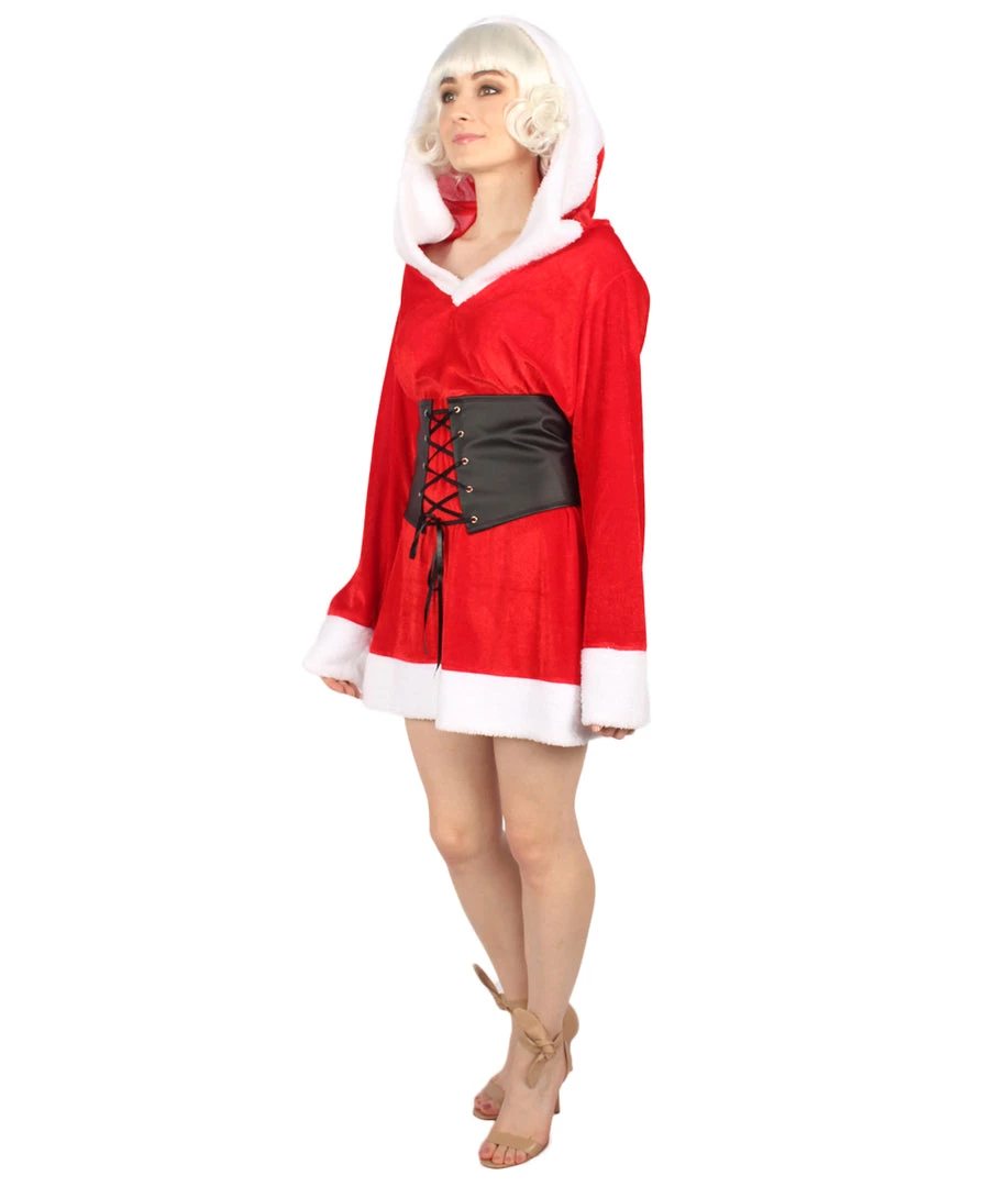 HPO Men’s Adult Women Fervor Hooded Sexy Santa Costume | Red & White Holiday Cosplay Costume