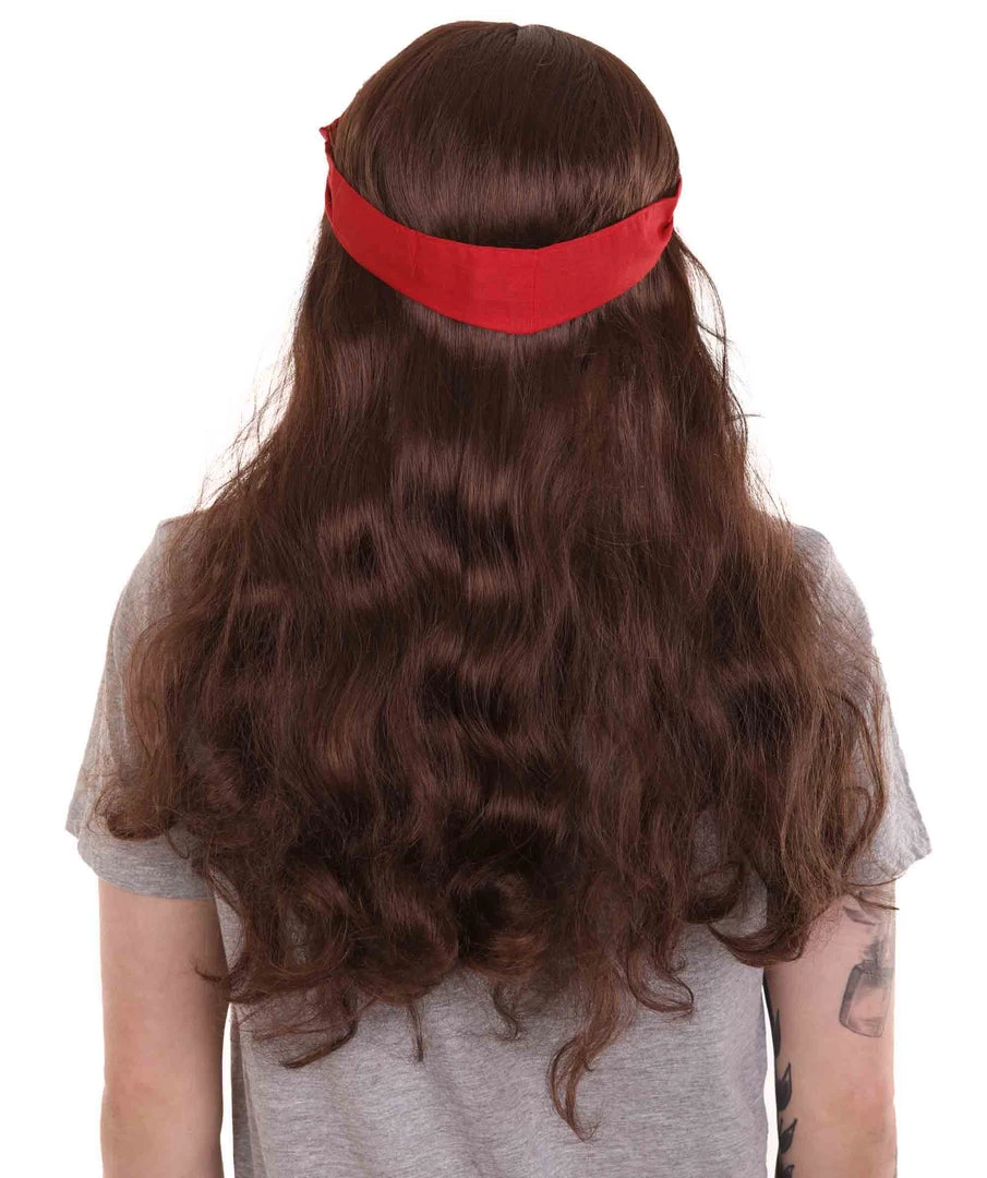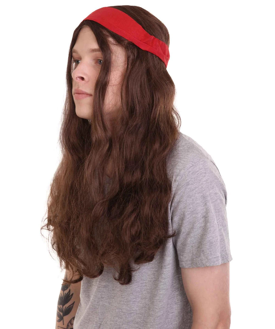 HPO Men’s Pirate Mens Wig | Brown Wig With Red Ribbon | Premium Breathable Capless Cap
