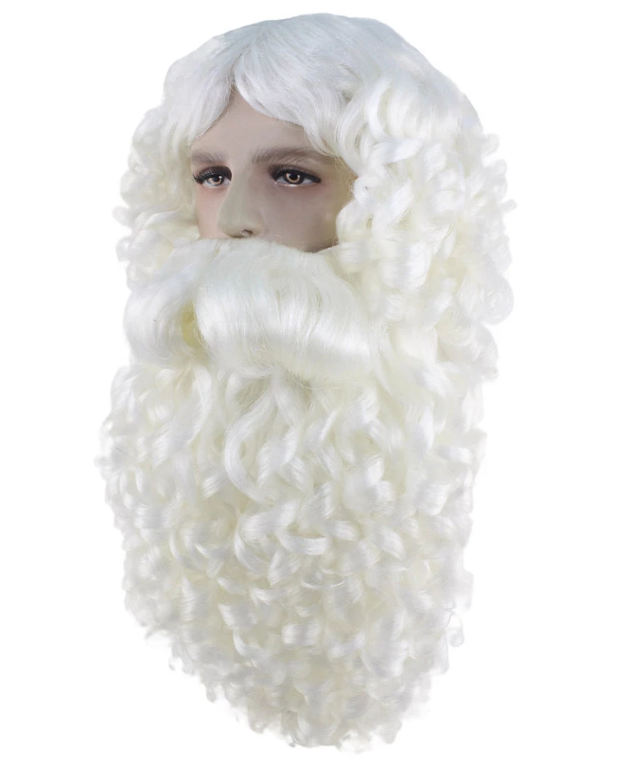 HPO Men’s Professional Mens Santa Wig And Full Beard Set | White Merry Christmas Wig | Premium Breathable Capless Cap