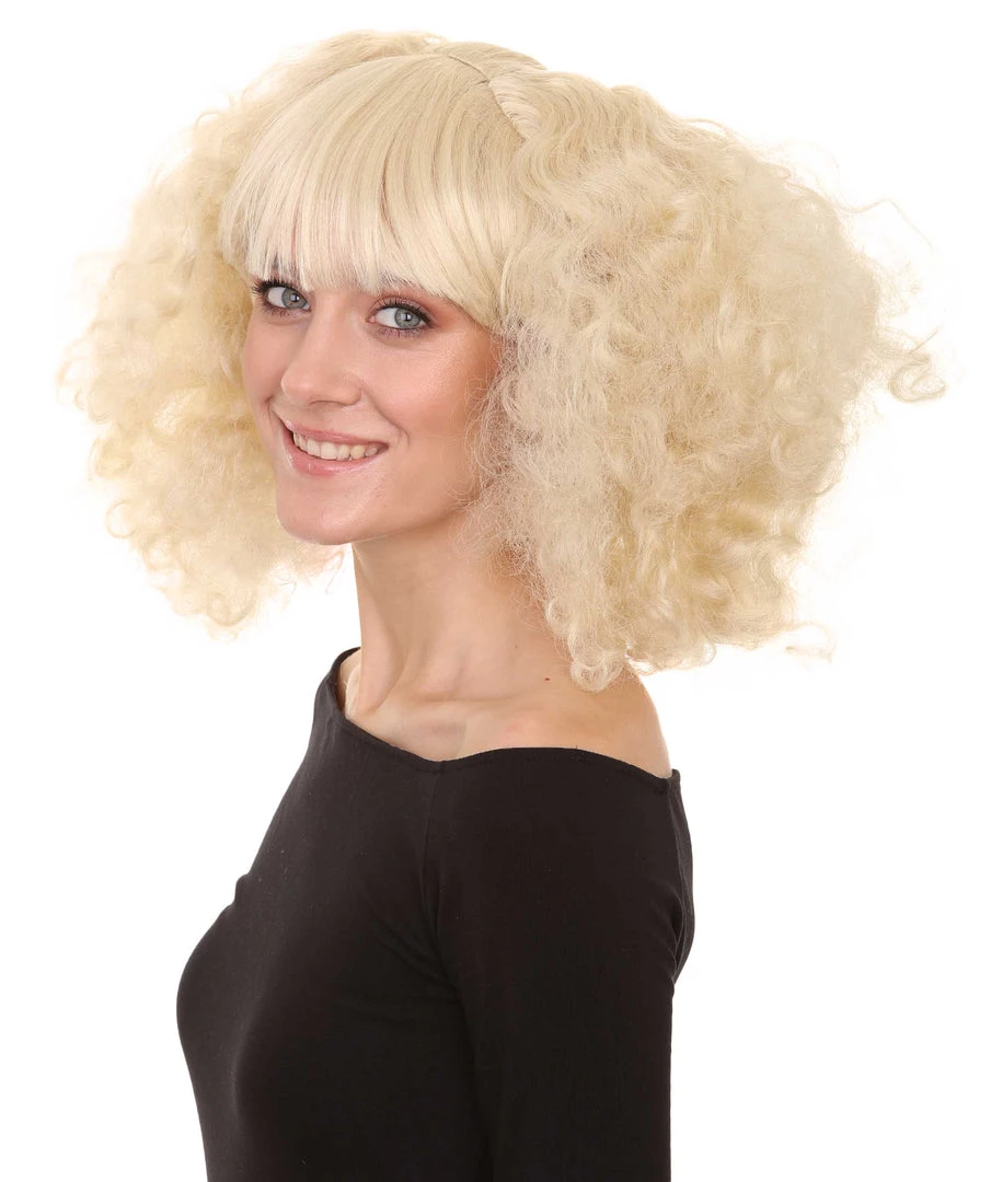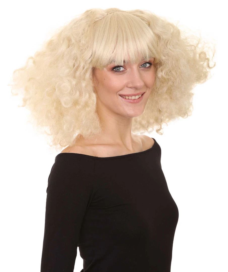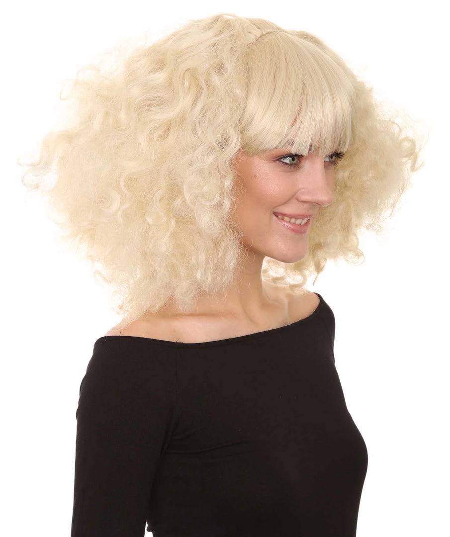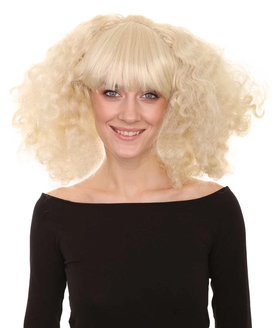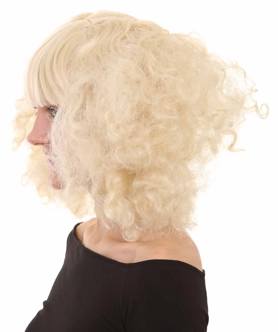 HPO Blonde And Blue Big Curly Womens Wig | Celebrity Famouse Wig | Premium Breathable Capless Cap