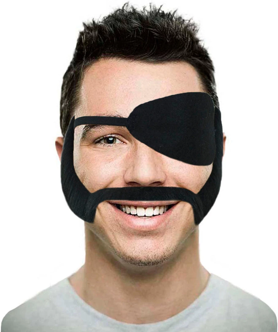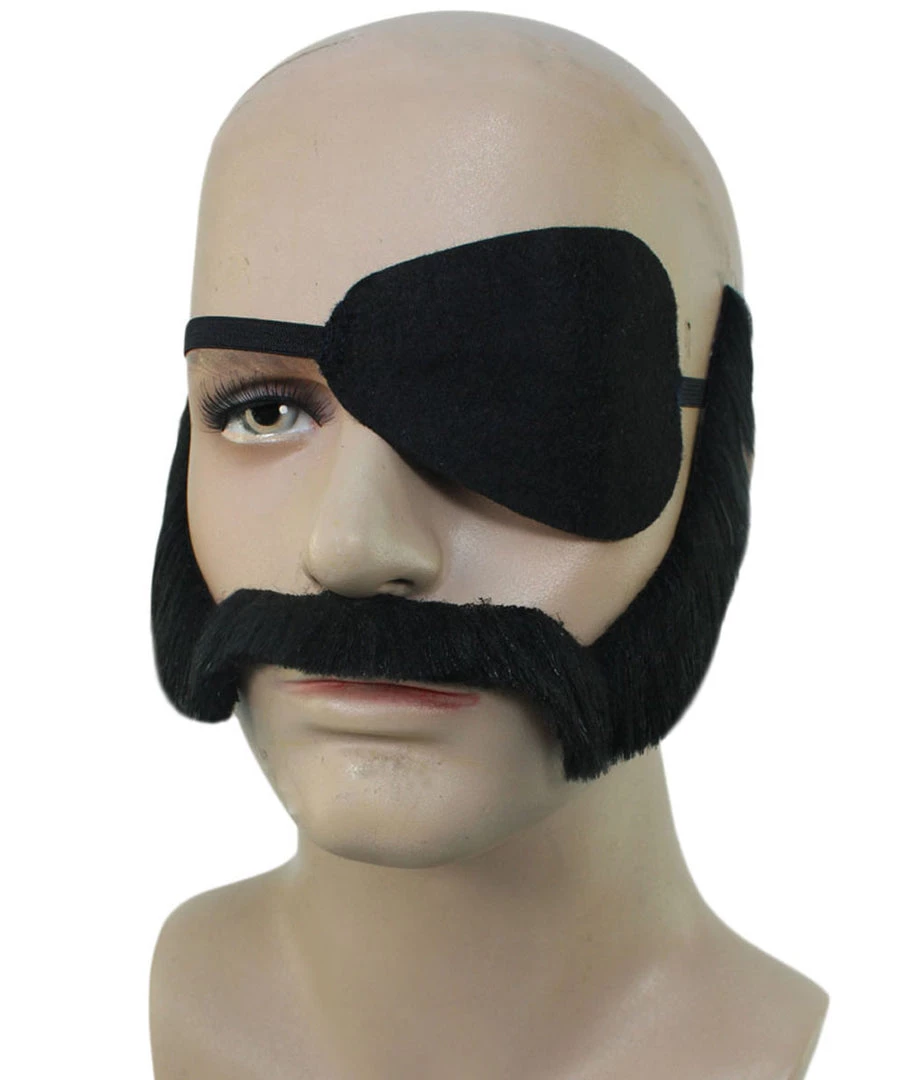 HPO Mens Assasin Black Full Beard With Eye Mask Set | TV/Movie Accessories