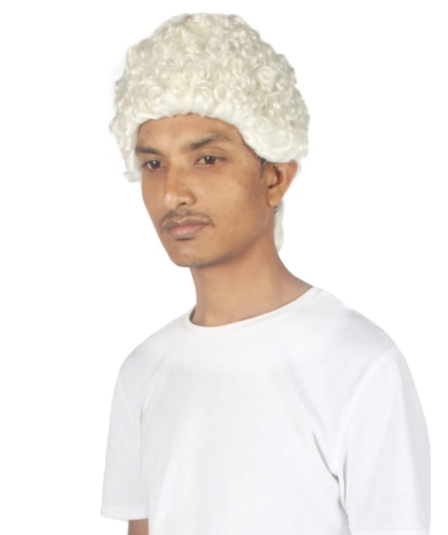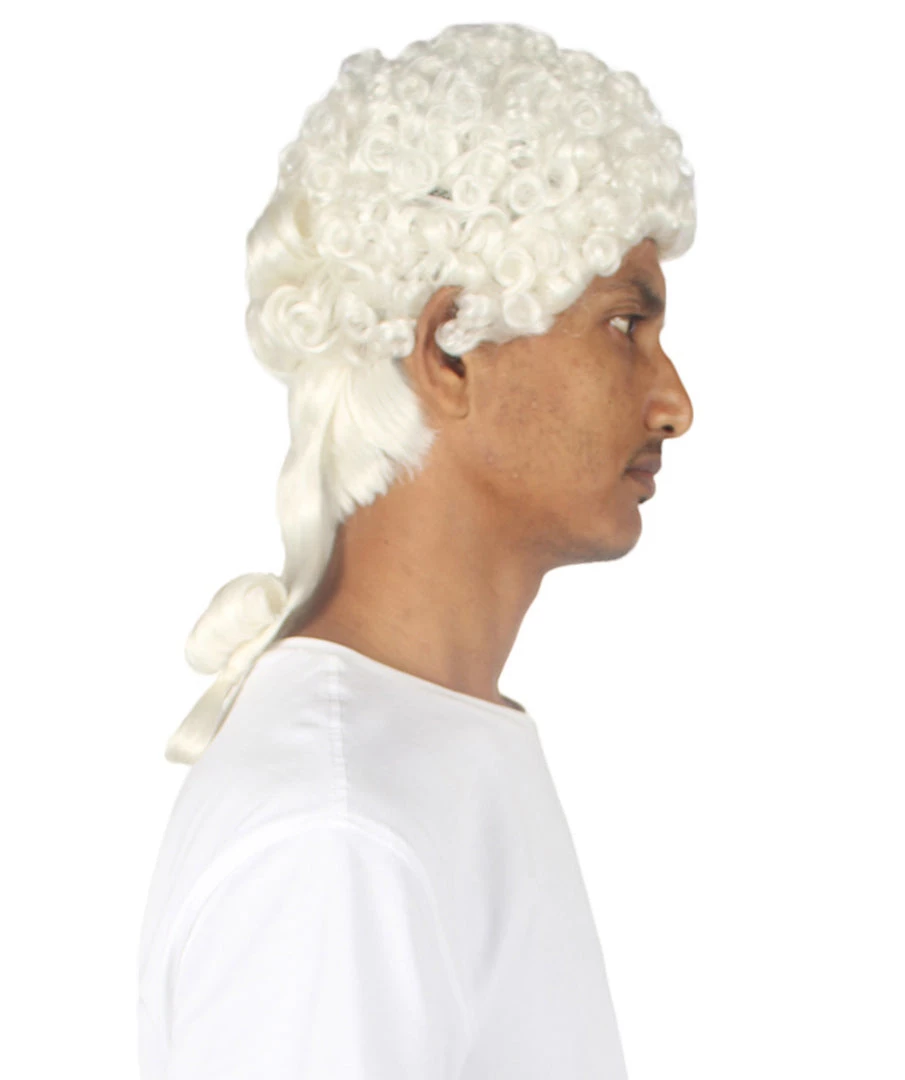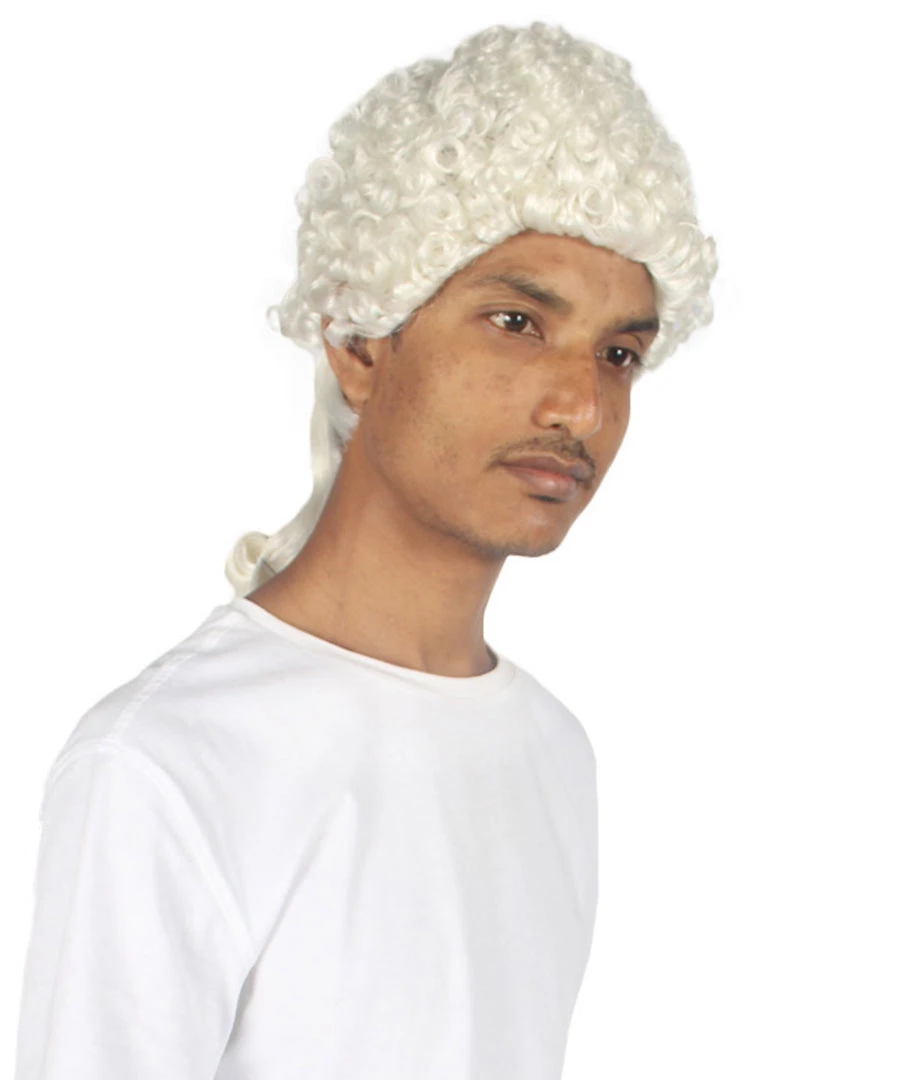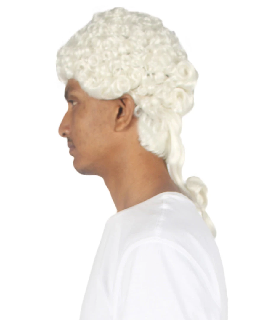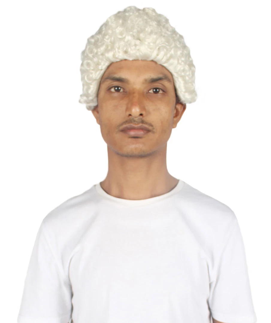HPO Mens Colonial Curly Judge White Historical Wigs | Premium Breathable Capless Cap Men’s