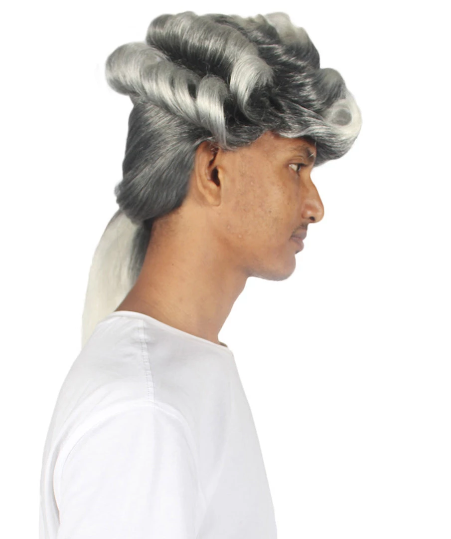 HPO Mens Colonial Long Grey Historical Wigs | Premium Breathable Capless Cap Men’s