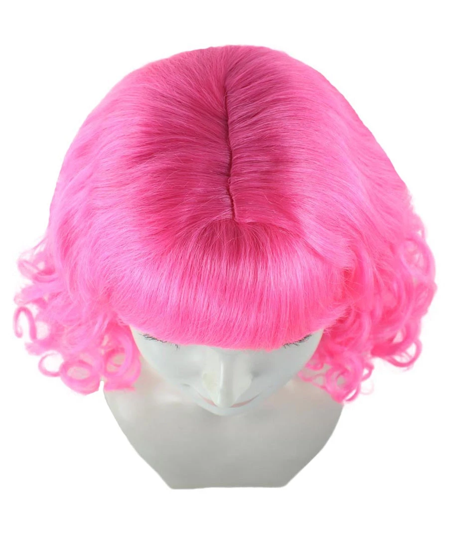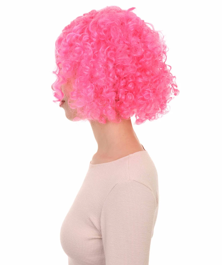HPO Pink Curly Womens Wig | Party Ready Fancy Cosplay Halloween Wig | Premium Breathable Capless Cap Women’s