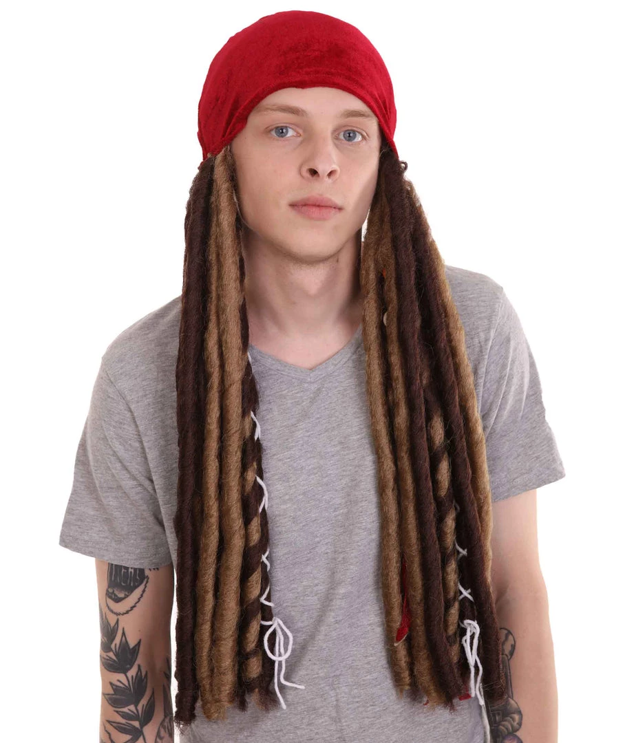 HPO Pirate Pete Mens Wig | Cosplay Halloween Wig With Red Cap Men’s