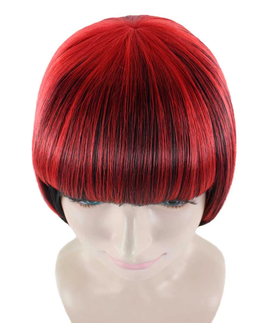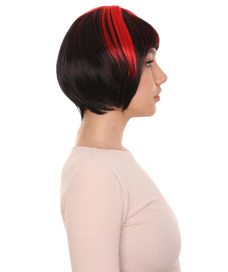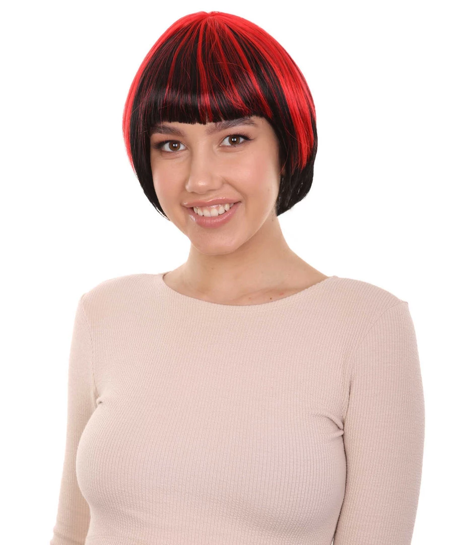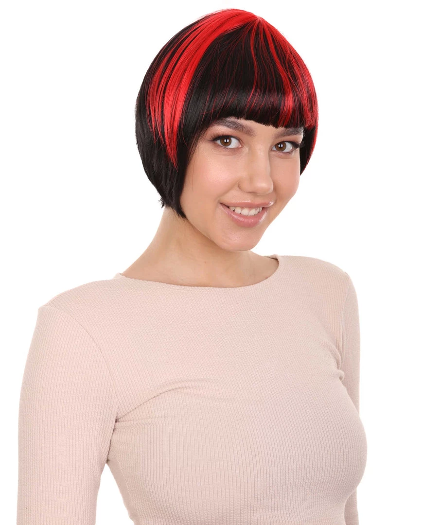 HPO Quirky Bob Womens Wig | Red Black Party Ready Fancy Cosplay Halloween Wig | Premium Breathable Capless Cap Women’s